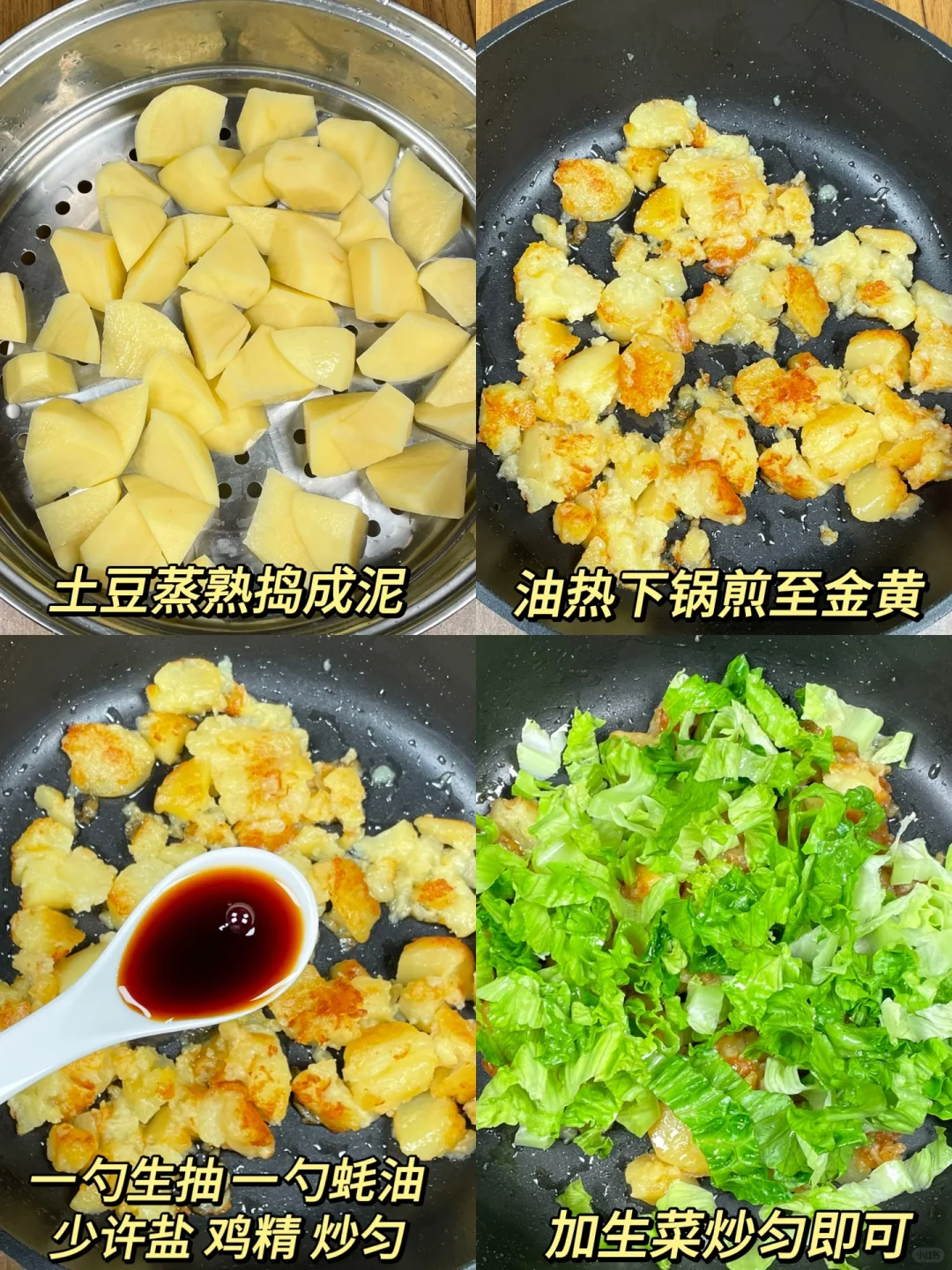 超好吃的青菜土豆泥!巨香巨下饭[色色R] 土豆软糯绵密,青菜脆嫩爽口,配米饭能炫两大碗,太香了哇[黄金薯R]做法简单不翻车,求你们都去做!! [向右R]食材:土豆➕青菜 [向右R]做法:如图所示!
