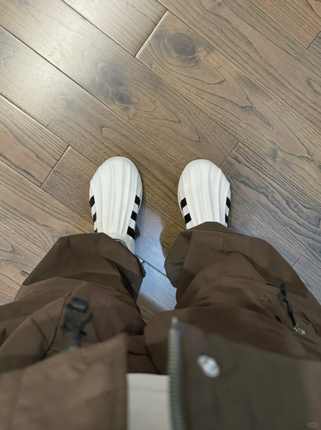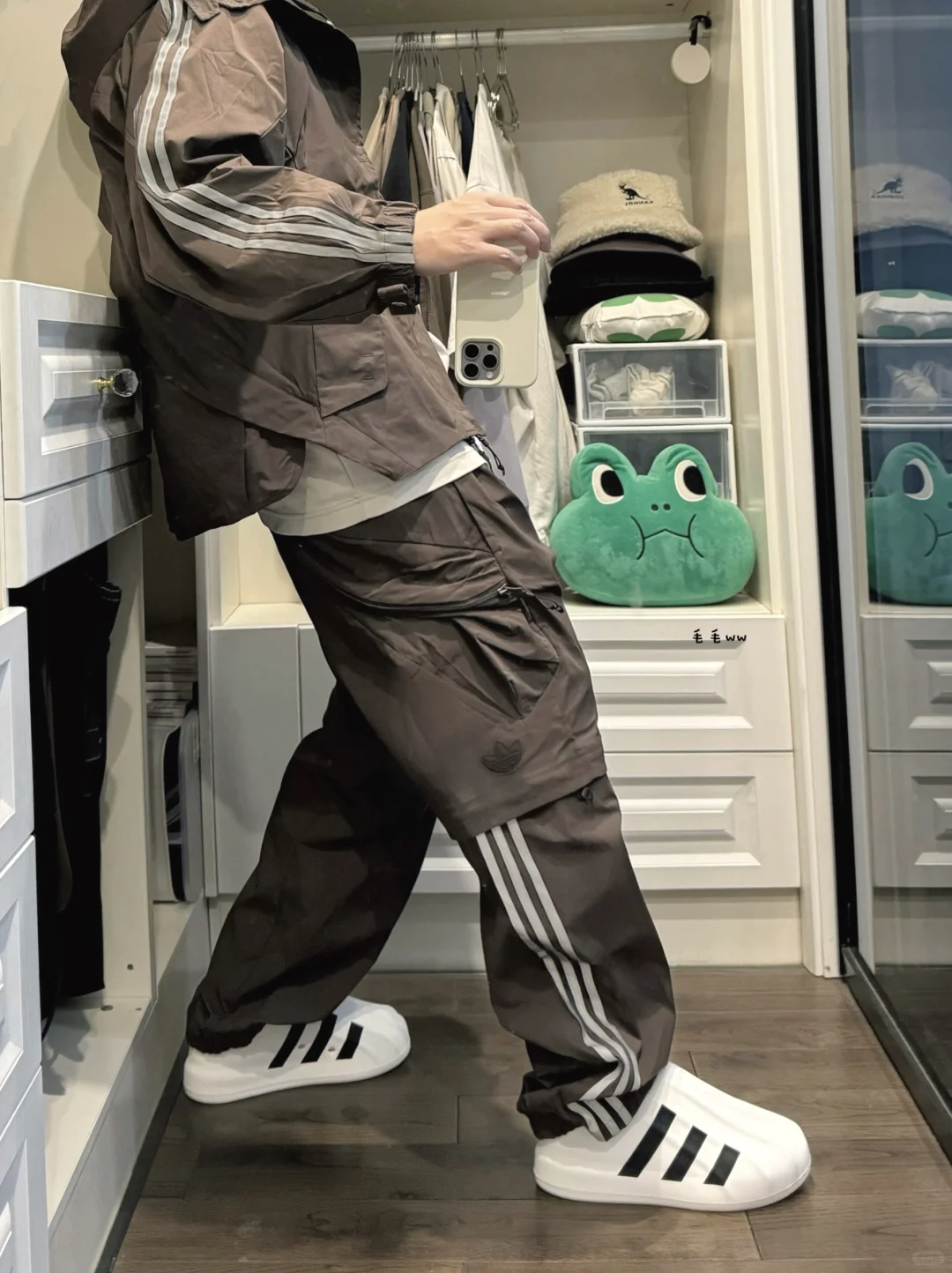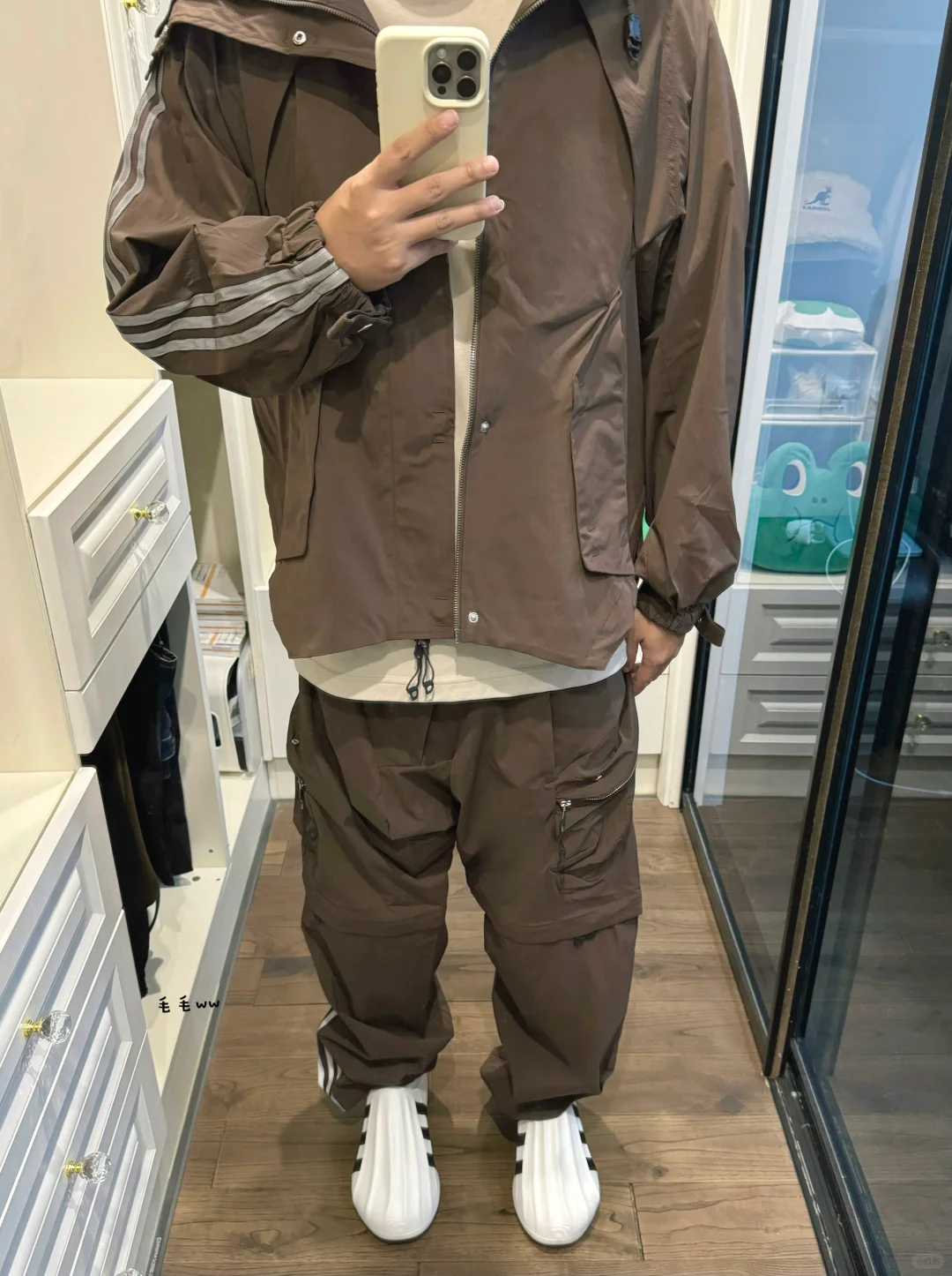 -如果沙色是hamcus第一季合作的亮点,那么棕色就是第二季的高光配色,一深一浅各有千秋 . -并非浅浅的大地色,而是偏巧克力,妥妥的美拉德风,冲锋衣搭配二合一长裤,套装效果更佳 . —————— . ✏️本人178cm75kg 球鞋尺码265mm(正常EU42) . 💭以上均为我个人观点,不喜勿喷,欢迎讨论