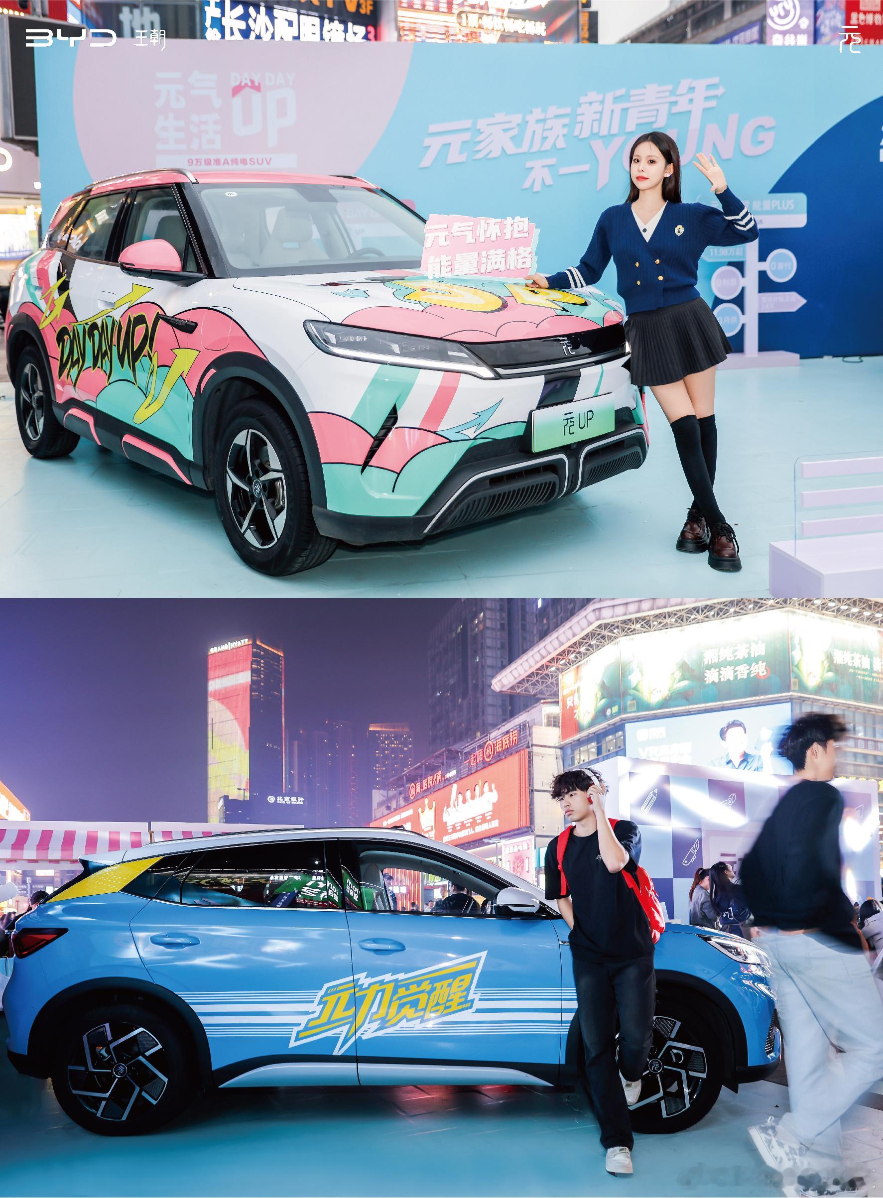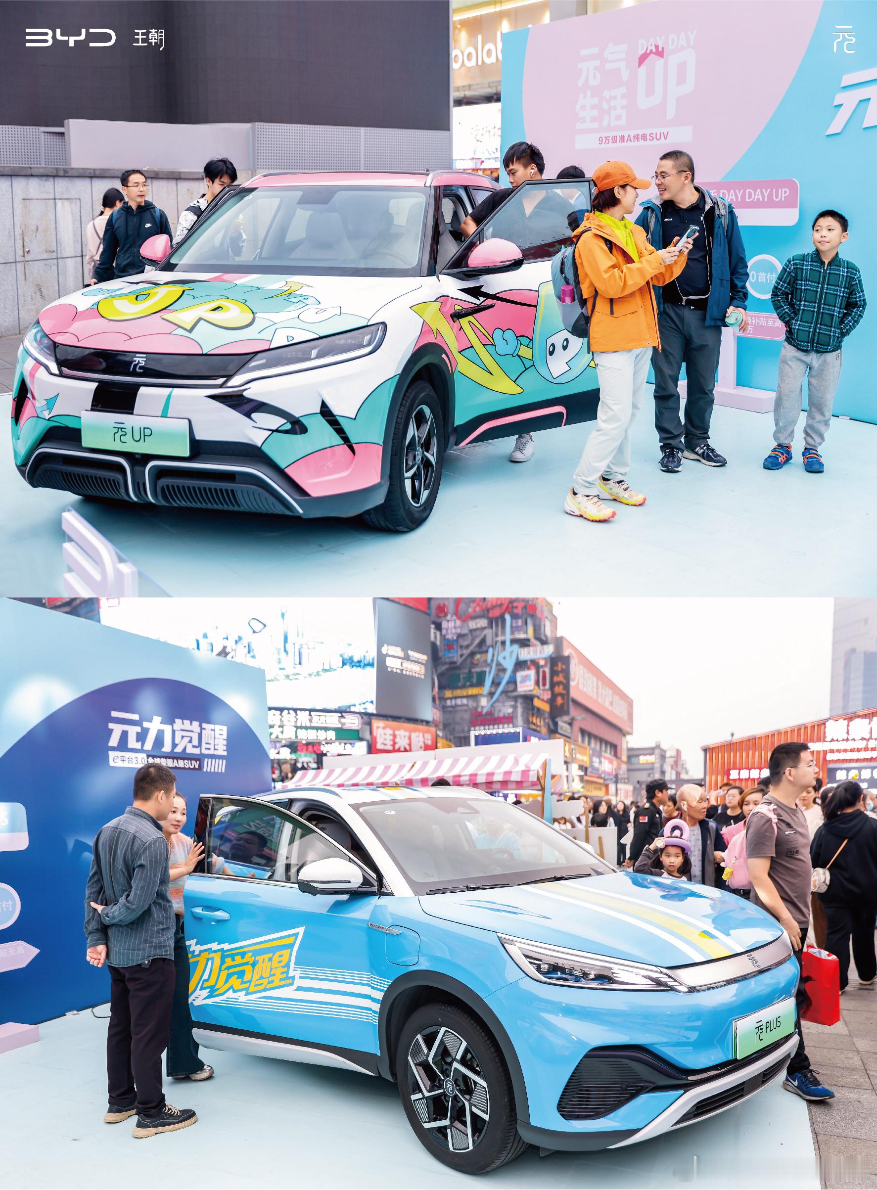 元UP以独特的UP仔为灵感设计车衣,将元气满满的生活态度展现得淋漓尽致。车身线条流畅,色彩鲜艳,吸引了无数目光。UP仔的形象也巧妙地融入其中,使得整车看起来更加生动可爱。活动现场,许多观众纷纷驻足,与元UP合影留念,共同记录下这份独特的美好。