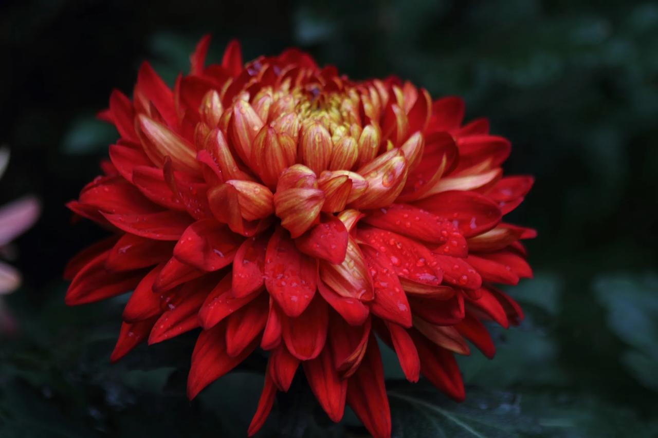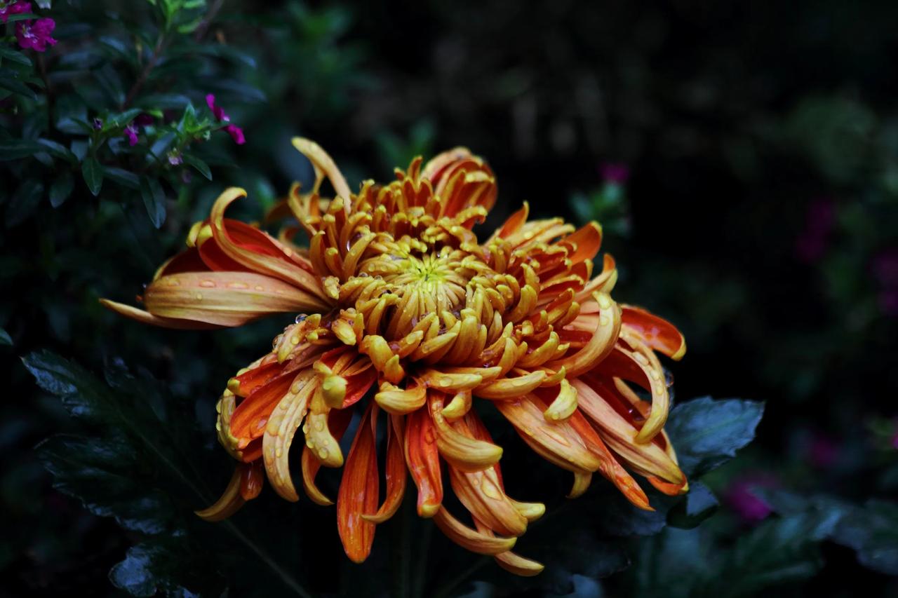 初冬天阴日渐寒,傲霜秋菊花更艳。菊花雨后自带露,寻寻觅觅再入园。[赞][赞][赞]