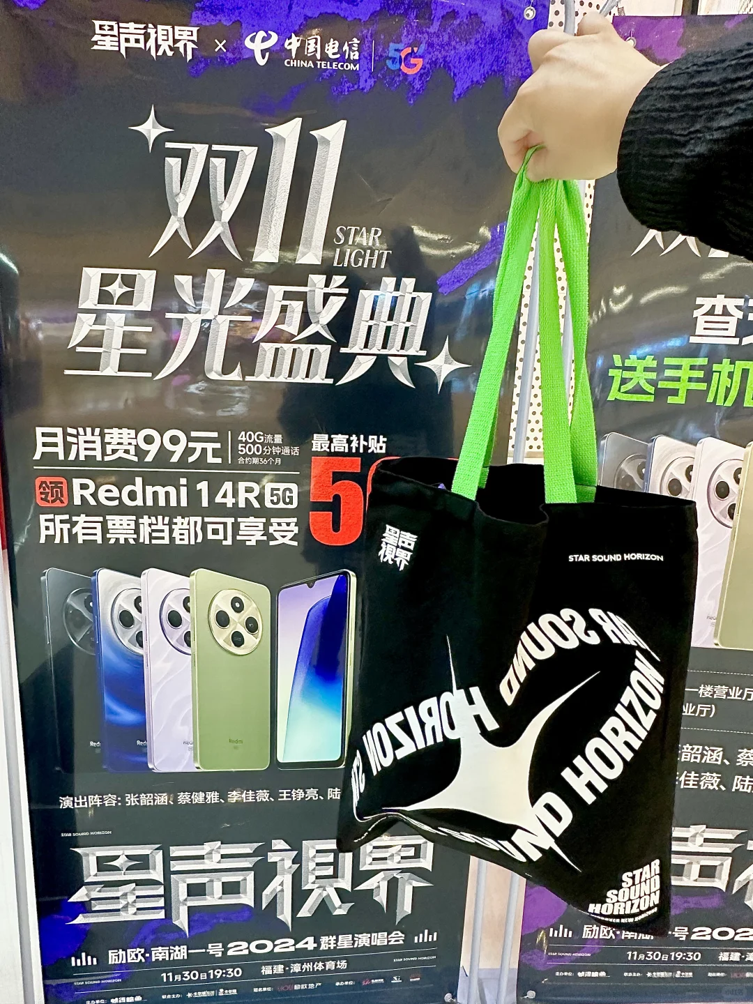 就在📍漳州体育馆 张韶涵,王铮亮、蔡健雅等众多明星要来漳州开演唱会了 今天来吾悦换周边礼袋了,好鸡冻啊啊啊啊 看到整个吾悦广场大屏上有王铮亮的照片还是挺鸡冻的 喜欢0713的粉丝们看过来 没想到11.30还是王铮亮的生日专场 这次演唱会有好多主办方支持! 虽然188的票没有了,但是还可以参加电❤️信❤️公❤️司的活动,推出Redmi 14R📱➕门票🎫免费送活动 回家路上经过公交站也看见了海报,一整个期待住了