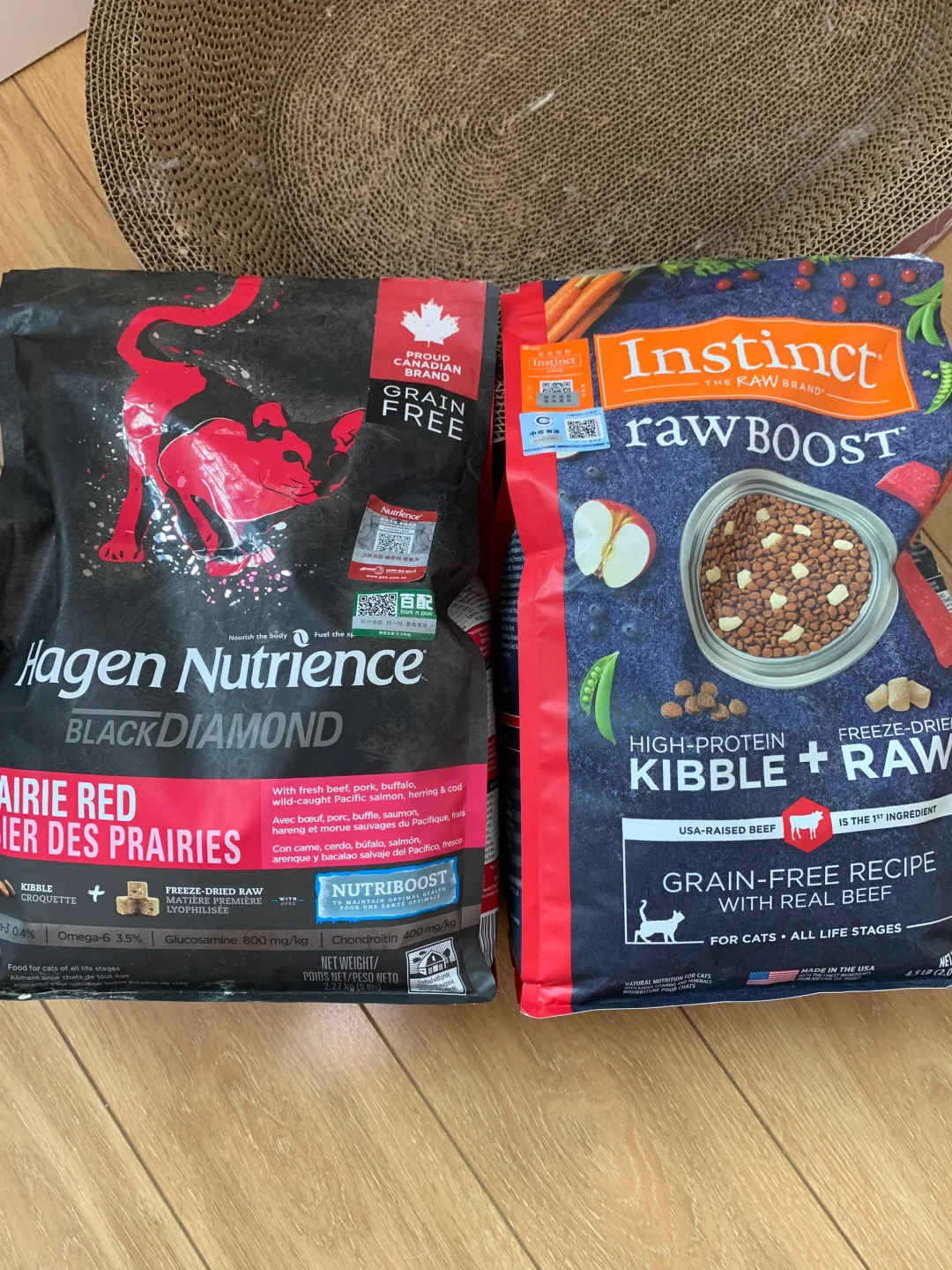 天气越来越冷拉,马上就要到冬天了,冬天首要的目标就是给我家小猫贴一点秋膘和提升一下抵抗力,做了很多功课,都说给小猫吃带有红肉的猫粮,能帮助猫咪长肉肉和提升抵抗力,做了好几天的功课,我发现市面上做红肉猫粮的品牌是真的很少,基本都是在做鸡肉口味的,挑了很久,给我家小猫买了百利生鲜牛猫粮和纽翠斯红肉猫粮,这两款都是进口挺出名的品牌了,品质都OK,目前两款我家小猫都吃了一段时间啦,来分享一下试吃感受~