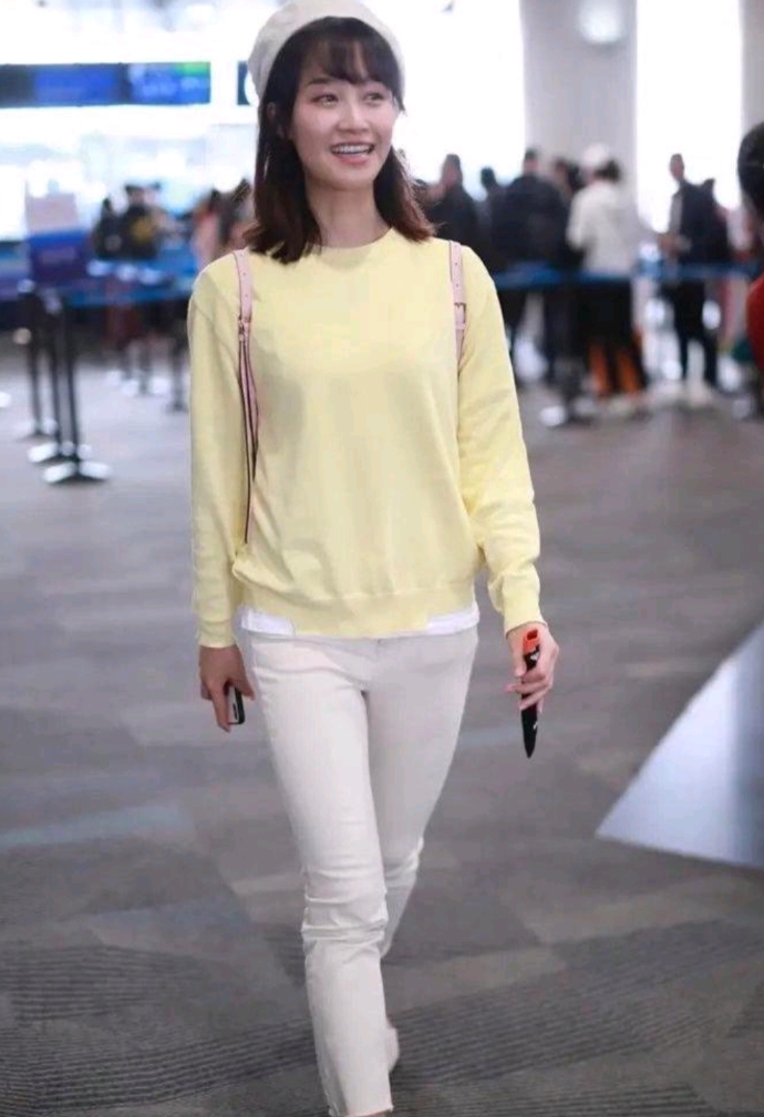 蓝盈莹真漂亮,黄上衣配白裤子,看着年轻又甜美