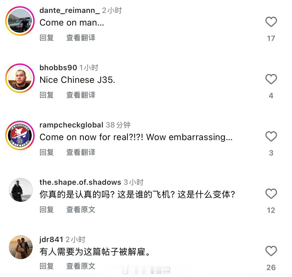 美国F35战斗机相关官方账号翻车了,拿J35的图做了张海报,和F35肥电那么大的