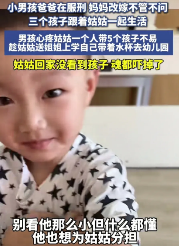 江苏一小男孩,爸爸在服刑,妈妈改嫁了,和姑姑一起生活。谁曾想,这天早上,小男孩心疼姑姑,趁着姑姑送姐姐上学,自己拿着水杯就去幼儿园了。 姑姑的白发,是这座城市中最沉默的诉说。 她没有多余的时间去打扮自己,也不再有精力化妆,只因为她的世界里充斥着五个孩子的喧嚣、哭闹与需求。 从小到大的孩子们,衣服、书包、作业本,每一项事物都需要她去整理、检查、准备。 送大孩子去学校,送小的去幼儿园,孩子们有时还会拉着她的衣角,吵着要妈妈陪伴,姑姑只能微笑着安抚,而后匆忙离开家门,送走所有的孩子,自己才能稍微喘口气。 她知道这些孩子无辜,他们的父母各自走上了不同的道路,而作为亲人的她,无法也不愿将这些孩子抛在身后。 她心中明白,五个孩子的未来,正是她所肩负的责任。 白天要工作,下班后再回来做饭、打扫卫生、辅导功课,一直到深夜,才可以稍微休息片刻。 或许,她已经习惯了这些,甚至习惯了那份无法言说的辛苦与疲惫。可即使如此,她的心中依然有一个不可动摇的信念,那就是:这是她作为姑姑的责任。 生活中的压力和焦虑并未让姑姑的心灵变得麻木,相反,这些压力使她变得更加敏感、更加细腻。 她时常觉得自己老了,甚至连镜子中的自己也不再认识。而每当她感到力不从心时,总有一个声音在心底提醒她,这一切,都是值得的。 而这份牺牲,最终在一个不起眼的早晨,收到了回报。 那天,她如往常一样准备送姐姐上学,孩子们忙着穿衣、吃饭,唯一的小男孩,似乎突然长大了。他看着姑姑忙碌的身影,眼神中透出一丝不舍。 今天,小男孩有了不同的决定。 他默默地穿上鞋子,拿着自己的小书包和水杯,准备独自一人走向幼儿园。 姑姑回来时,才意识到小男孩不见了。那她手脚冰冷,脑海中瞬间浮现出种种不安的画面。她急忙跑出门,心跳加速,几乎忘记了呼吸。 直到她在幼儿园看到小男孩时,她才松了一口气。 “小宇,你吓死我了。” 她想生气,却又忍不住为小男孩的懂事而感动。她知道,小男孩并不是任性,而是想为她减轻一些负担。 小男孩的懂事与体贴,深深触动了她的心。她从未想过,这么小的一个孩子,会有如此强烈的责任感与成熟。他并没有像许多同龄孩子那样,沉浸在自己的世界里,而是总是想着如何为她分担。 无论是打扫屋子,还是整理玩具,甚至是偶尔给她端杯水,他总是在用自己的方式,默默支持她。 而这份懂事,也在这座城市的喧嚣中悄然传递。 许多人看到这个故事时,都会为姑姑和小男孩感到心疼和敬佩。 每当我们看到像姑姑这样的母亲一样默默奉献时,我们依然相信,亲情的力量依旧强大,它能够超越一切困境,温暖每一颗受伤的心。