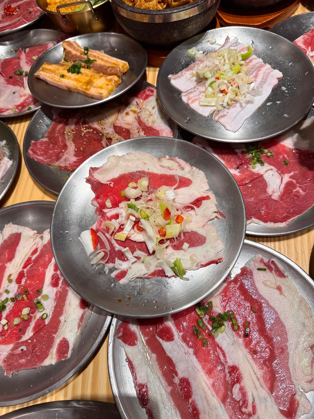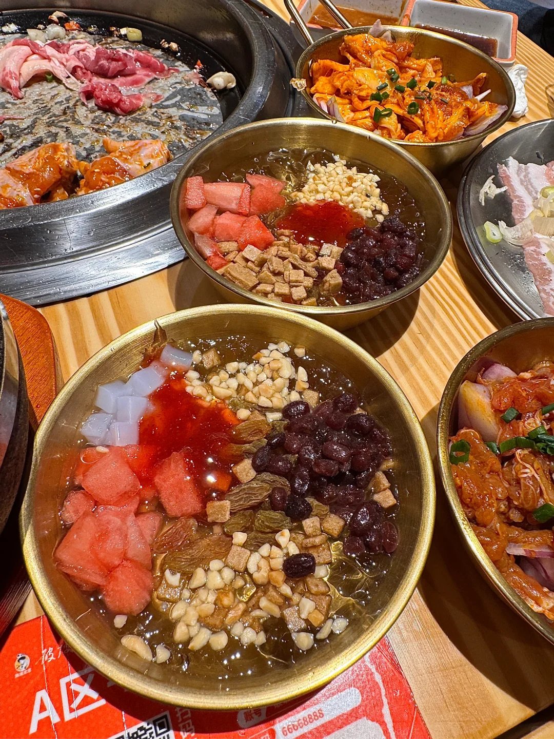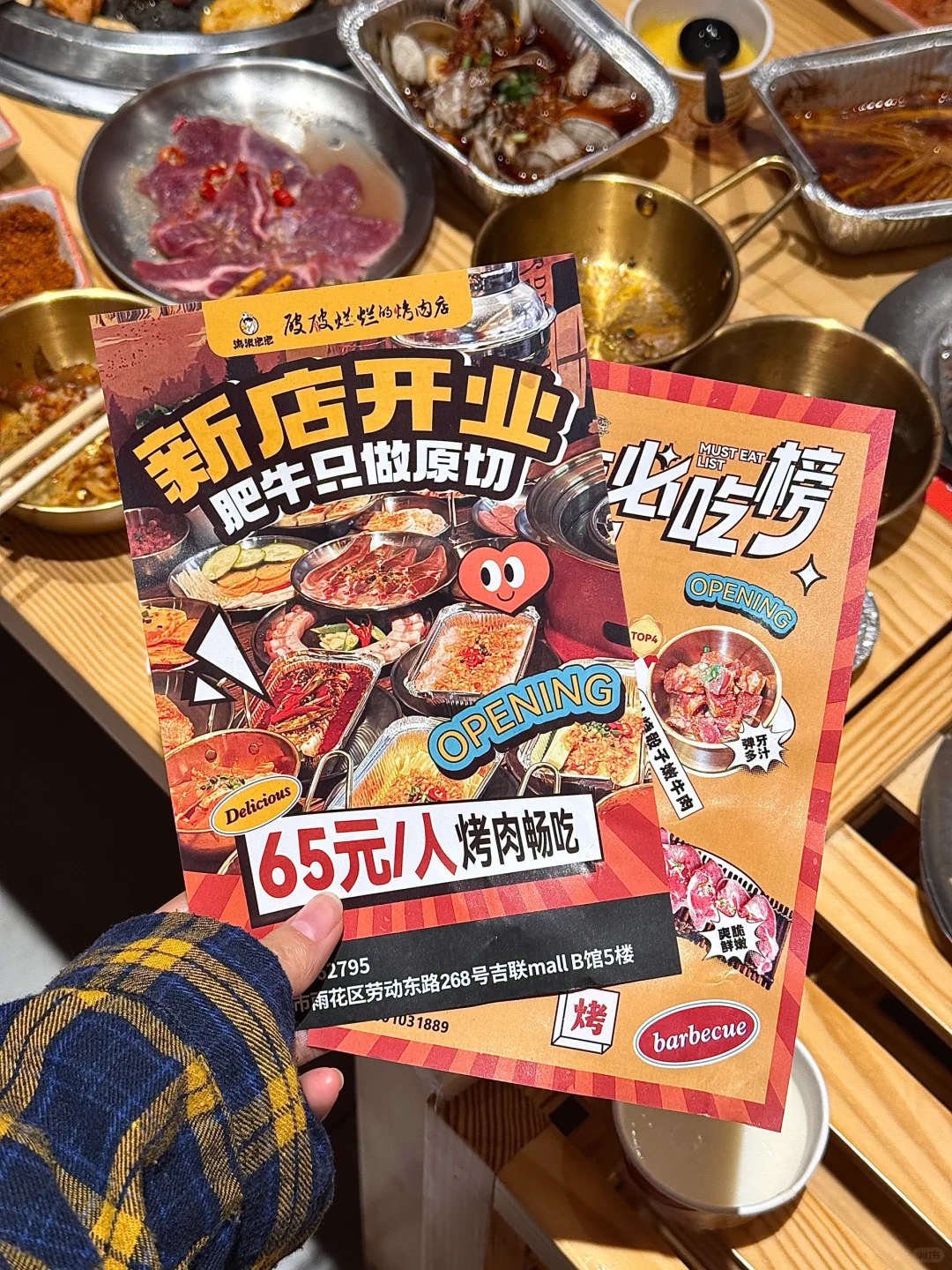 真诚发问🙋♀️老板真不怕被吃垮嘛😂 破破烂烂烤肉才65r一位!吃到扶墙出。。。性价比真的无敌顶🆙 ✅原切肥牛…黑椒五花…椒盐葱香肥牛…香辣嫩牛肉…好多好多种类🉑供选择😭胃口大的可以通通来一遍!!哈哈哈哈真的是肉食爱好者的快乐老家🎉 ✅肉的品质也都很不错👍 ✅店内还有冰粉和饮料🥤冰淇淋🍦都是随便喝随便拿(建议吃多少拿多少哈!) 缺点就是建议早点去!!因为晚了会排队😭