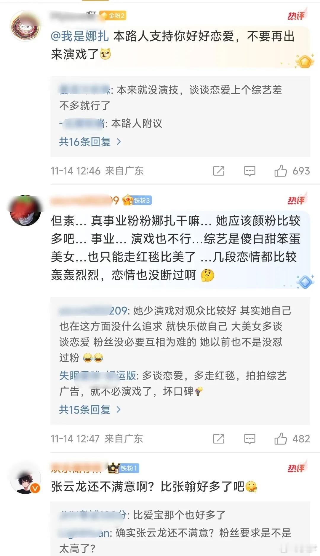 粉丝希望娜扎专注事业,但路人只希望娜扎别演戏了。恋情曝光的八卦,还是头一次吃到这么尴尬的。