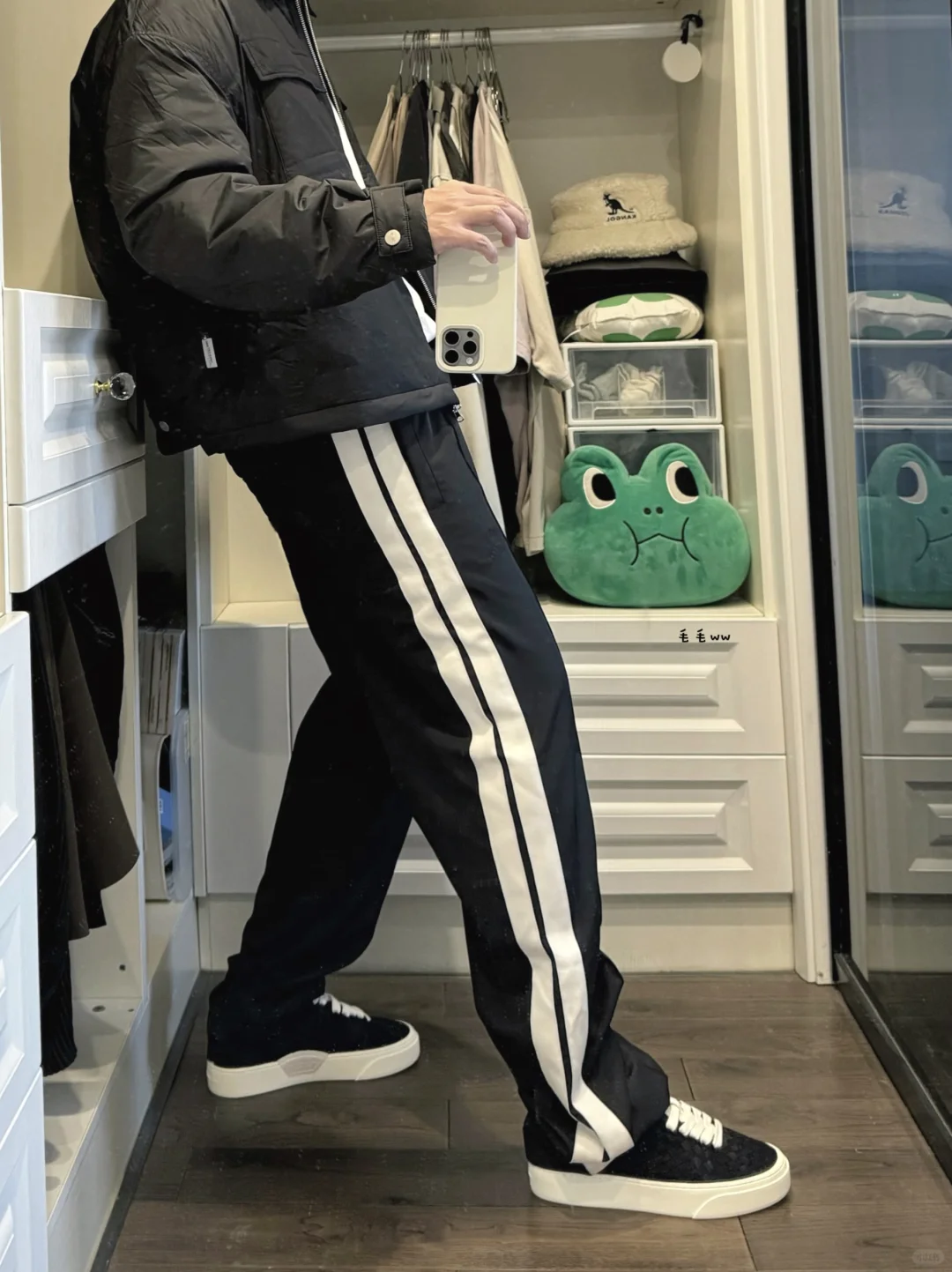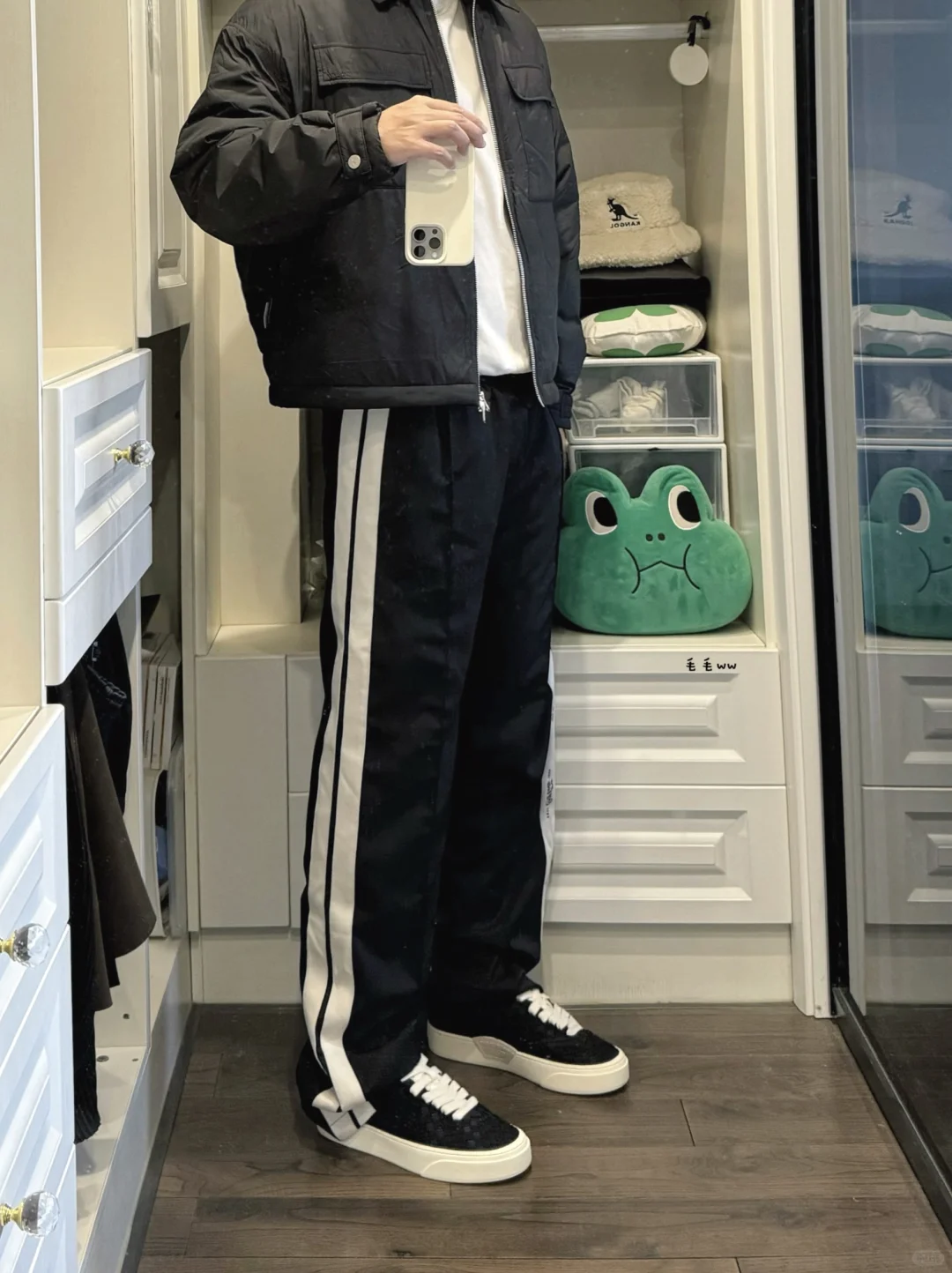 -运动裤的侧条纹,略带少年感的穿搭 -耐看的黑白色系,同样适用于秋冬季 -棉服搭配直筒裤,编织鞋面有辨识度 . —————— . ✏️本人178cm75kg 球鞋尺码265mm(正常EU42) . 💭以上均为我个人观点,不喜勿喷,欢迎讨论
