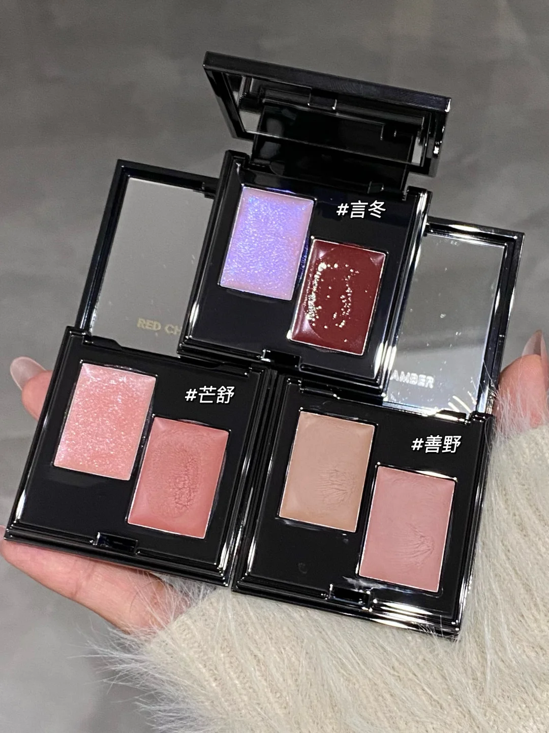 RC多用膏双色盘出新色啦! 看一眼就脑补出了冬日雪地冻伤的妆! -言冬 水光感冰川紫偏光碎闪+血色感砖红 上脸一秒拿捏慵懒微醺感 美到窒息! 这盘的质地会更水润贴肤! 轻轻揉一下就像巧克力酱一样丝滑 简直是为秋冬量身定做 两个老色也让我爱不释手😭 -芒舒 清冷碎钻+浅茶裸粉 从皮肤里透出来的健康红润感 减龄又显气色 -善野 杏柔米棕+木质藕粉 伪素颜淡人天菜! 隐于无形的精致高级感