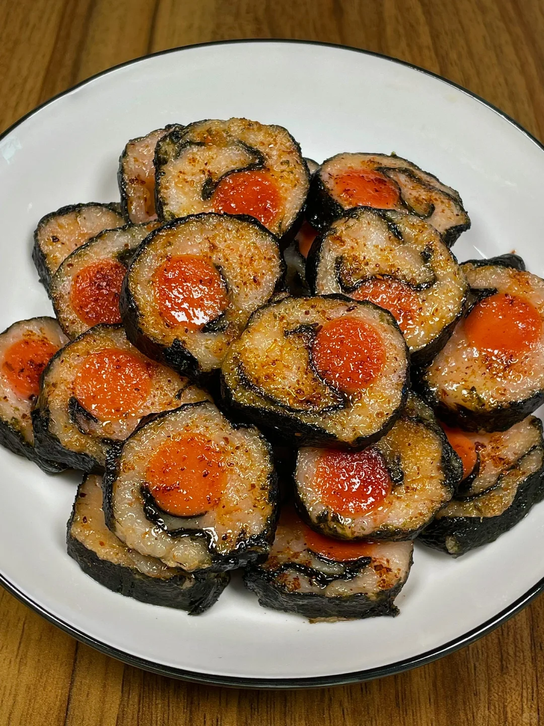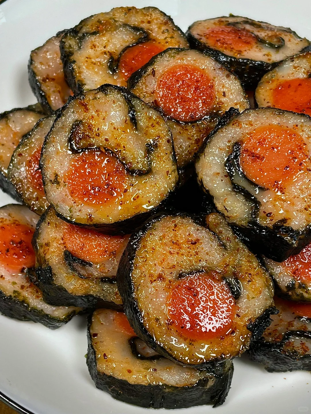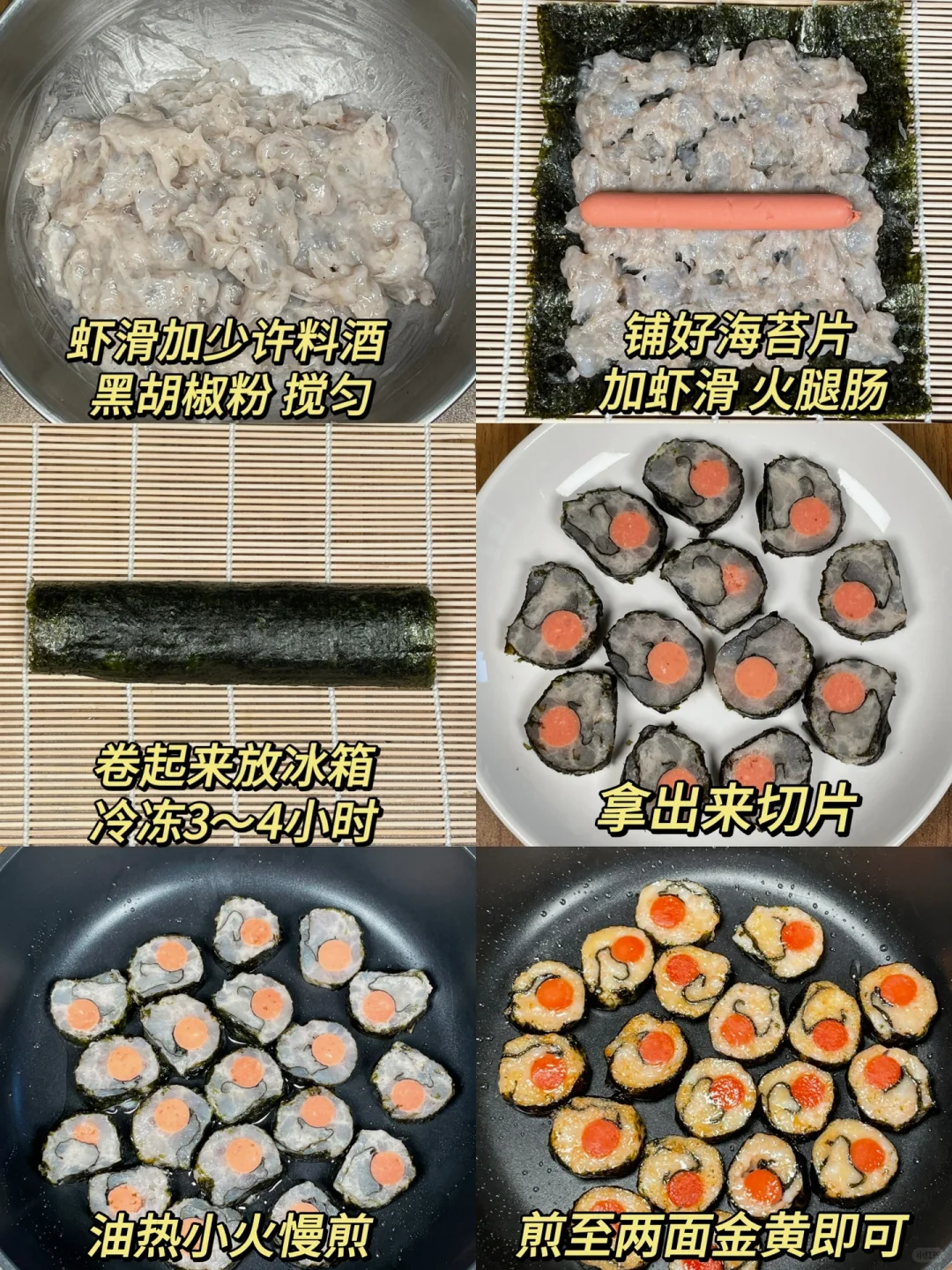 超好吃的虾滑海苔卷!一定要试试!! 虾滑Q弹,煎的外焦里嫩的,裹上火腿,香迷糊了[色色R]真的巨巨好吃[哭惹R][哭惹R]做法简单不翻车,求你们都去做!! [向右R]食材:虾滑➕海苔片➕火腿肠 [向右R]做法:如图所示!