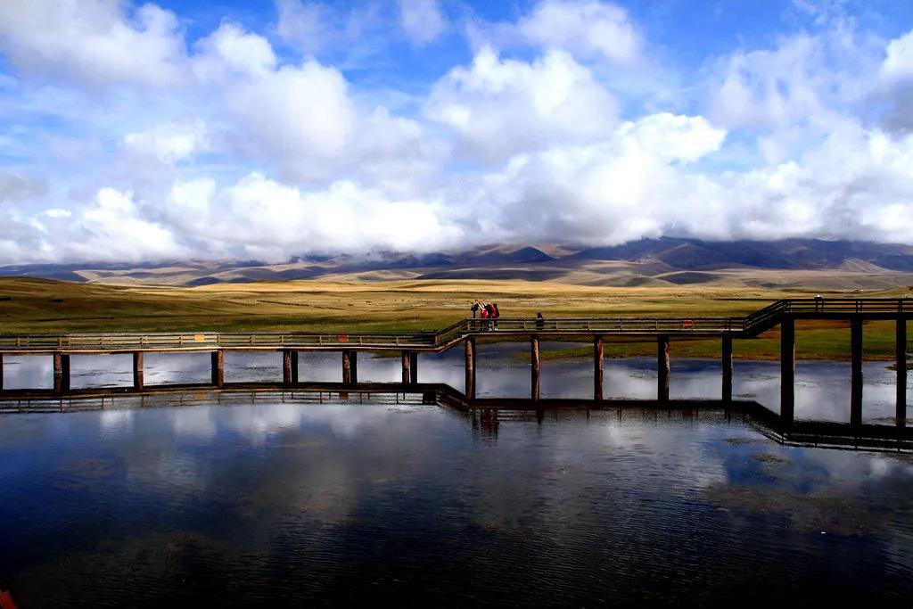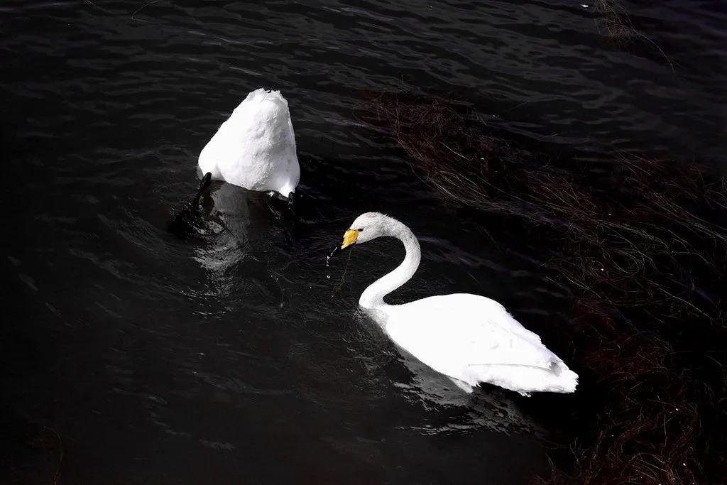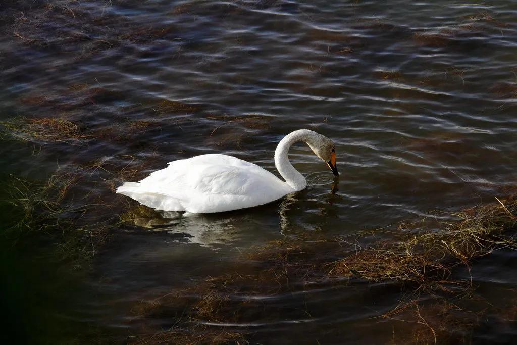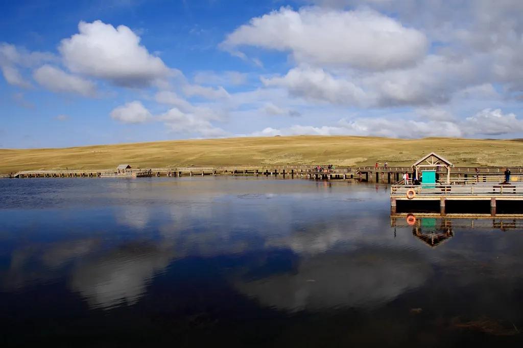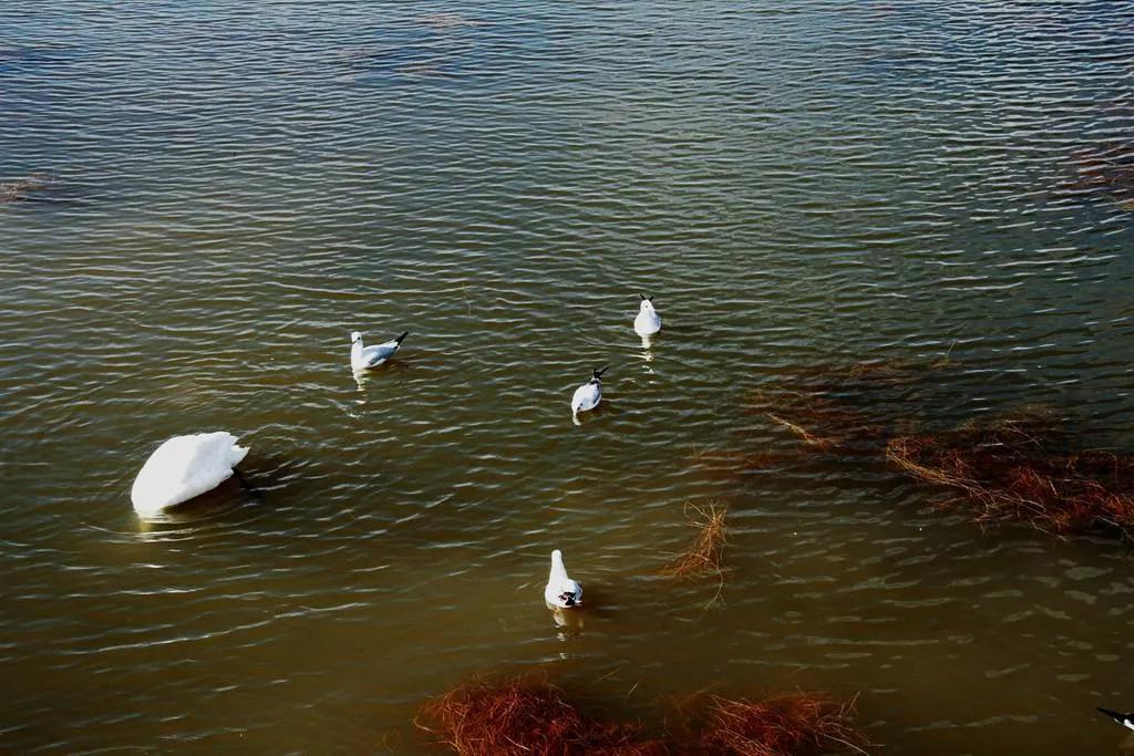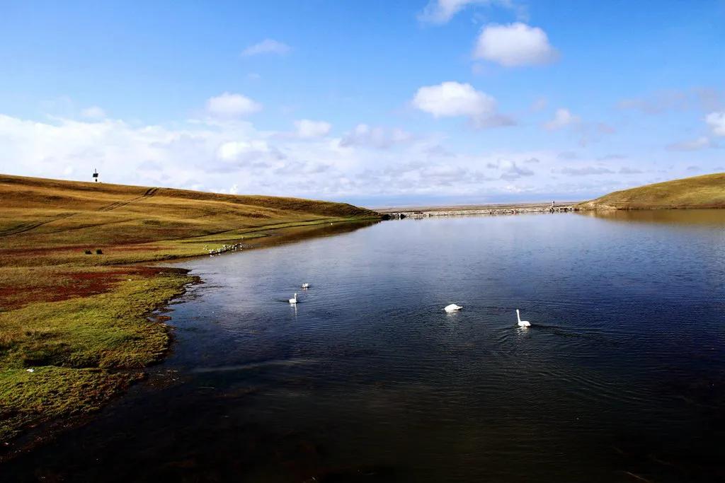 【巴音布鲁克 天鹅家园】20241116 巴音布鲁克天鹅湖名扬天下,它是中国唯一的天鹅自然保护区。只是,天鹅湖并非一个湖泊,而是海拔3000米的一个由河流、湖泊、沼泽、涌泉共聚一起的湿地,面积达1000多平方公里。所以,一般游客也只能在到达巴音布鲁克镇后,买票乘坐观光车进入景区游览一番。主要景点也就是“天鹅家园”和“九曲十八弯”。 天鹅家园是草原上一个不大的水库,修建了栈桥和观景台。看天鹅,最佳时间在4月,我9月中旬到这里时,居然还看到了天鹅,实在令人高兴。除了天鹅,还有鸥鸟。游客喂食,鸥鸟飞掠争抢,场景生动活泼。任人围观,天鹅丝毫不惊,悠闲自在地觅食。蓝天白云飘浮,湖水湛蓝深幽,天低云浓辽阔,倒影入水如画。草原略现枯黄,景色苍茫绚丽。景区是小了点,能看到天鹅,也相当不错了。 晒出你眼中最美的新疆 用一张图证明你走过独库公路