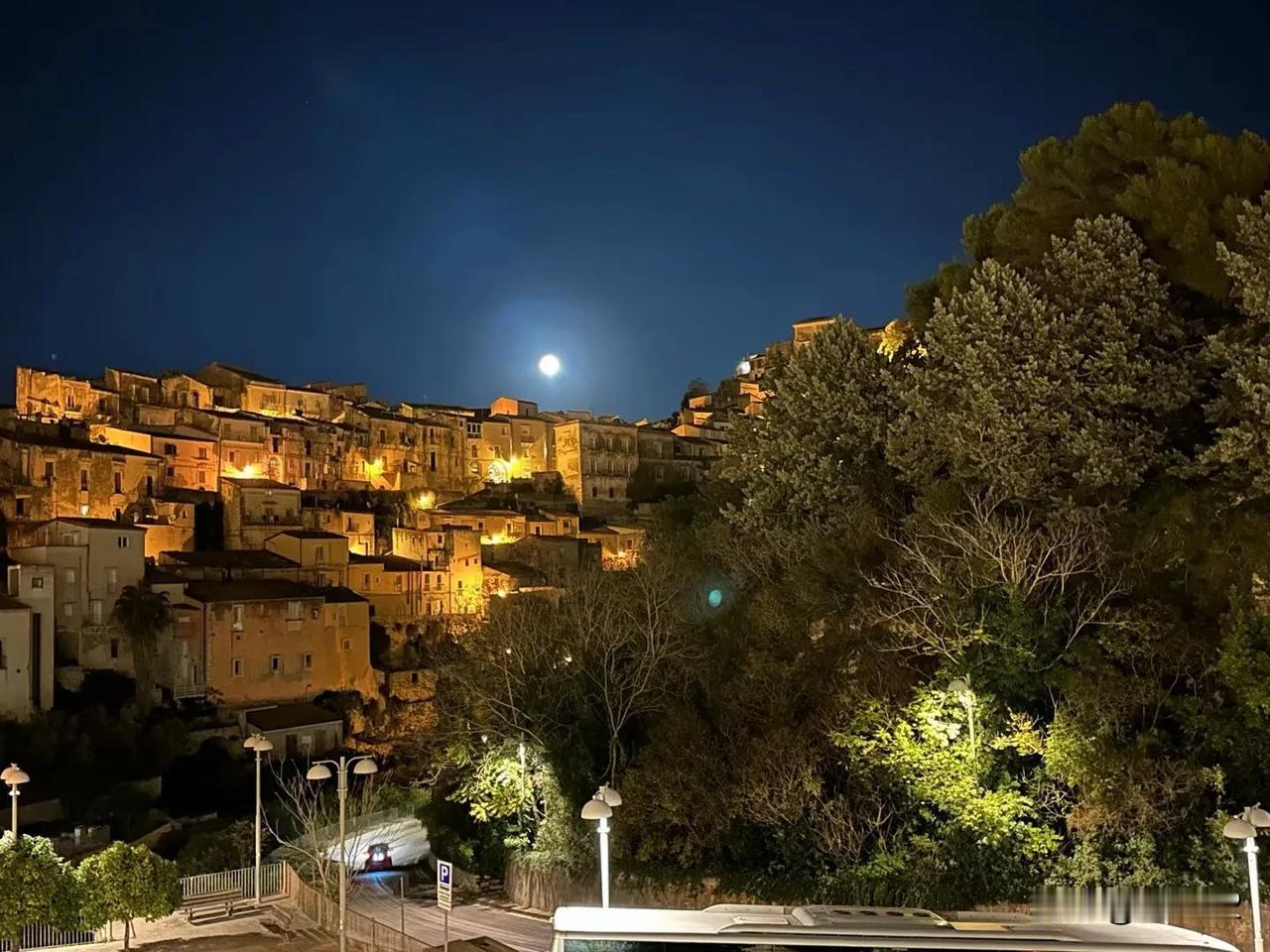 西西里岛拉古萨古城的夜晚,月亮又大又圆。 这里让我想起了意大利地图鞋跟那里的马泰拉古城,两个古城异曲同工之感觉。
