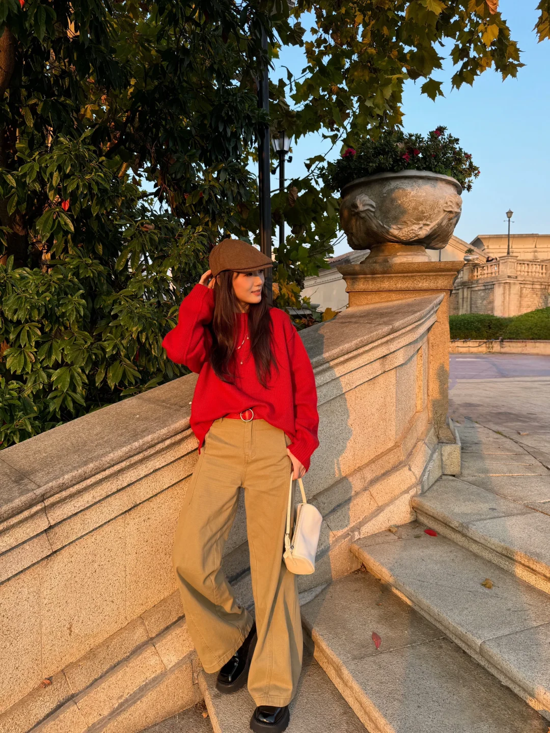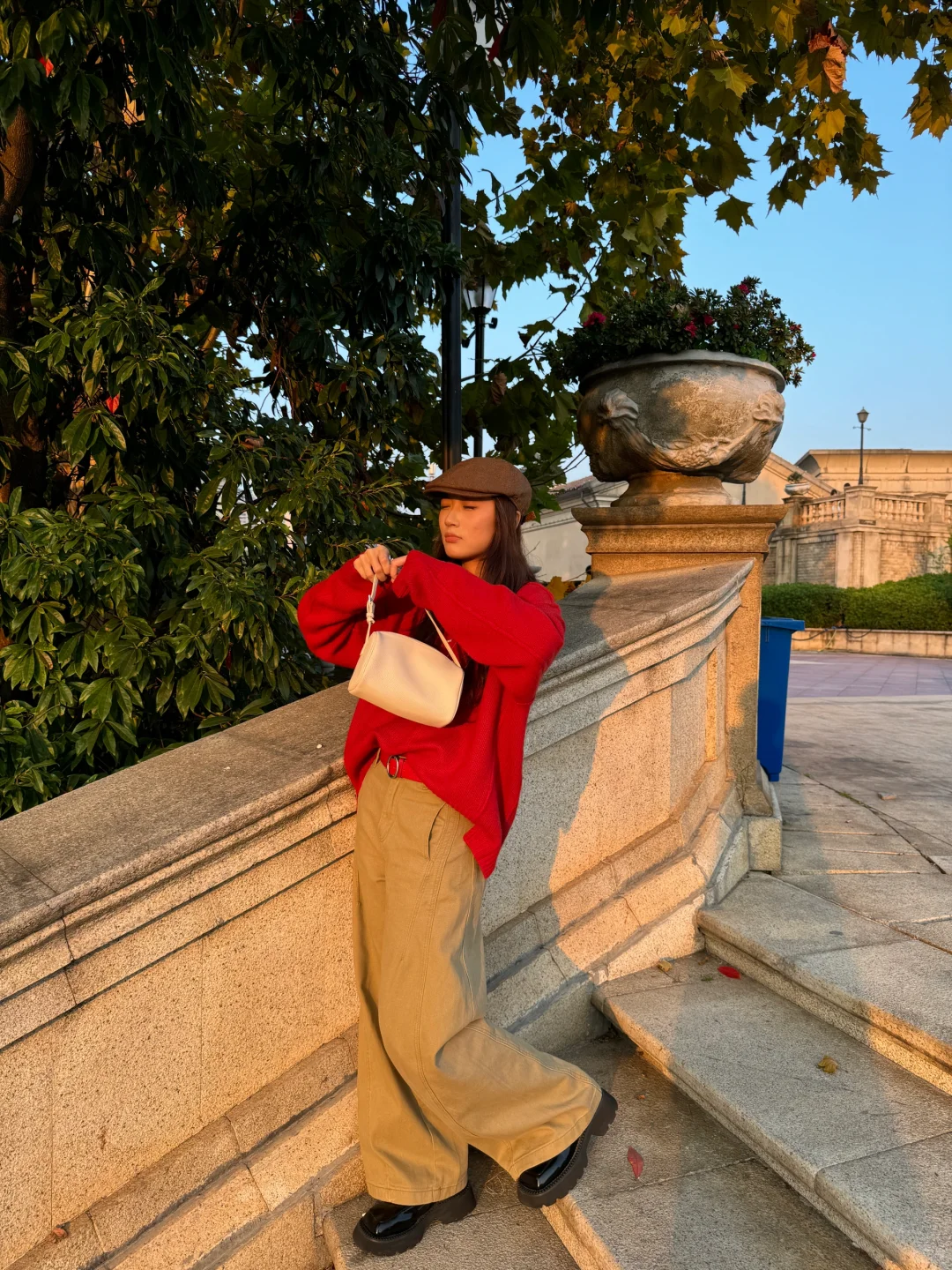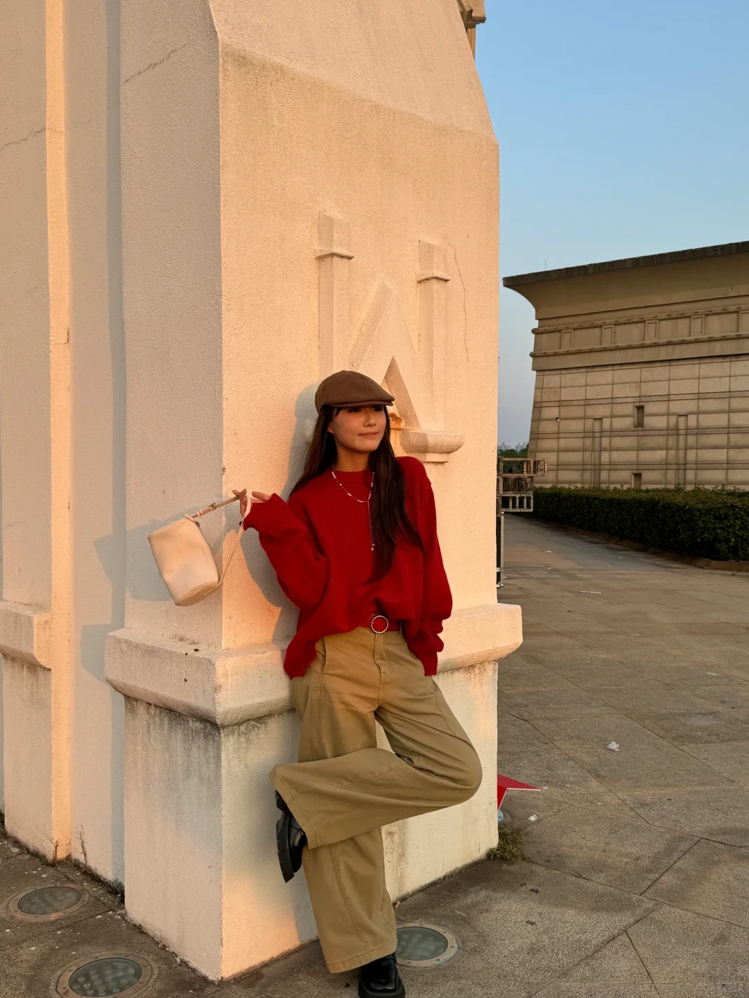 − 发现一个耐看的色彩搭配 红色🔴➕卡其色🟤 超级耐看
