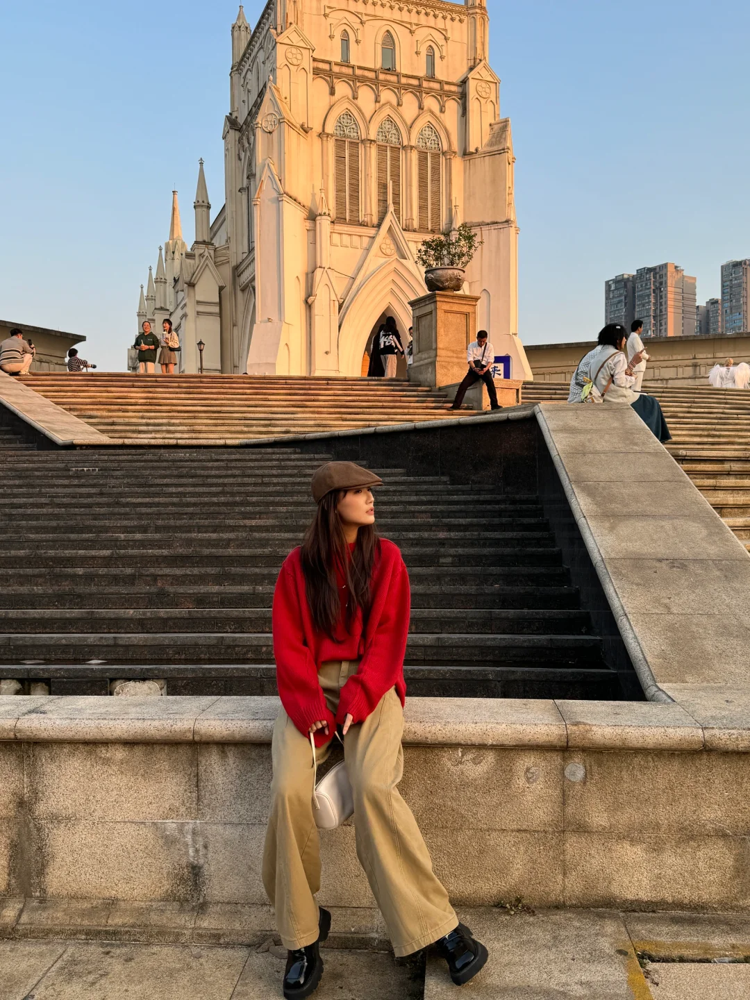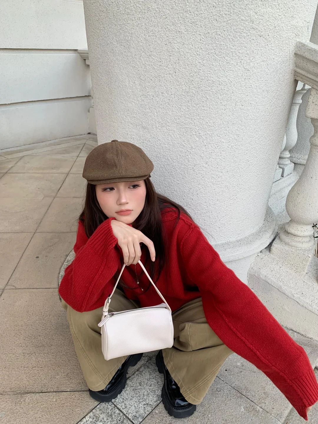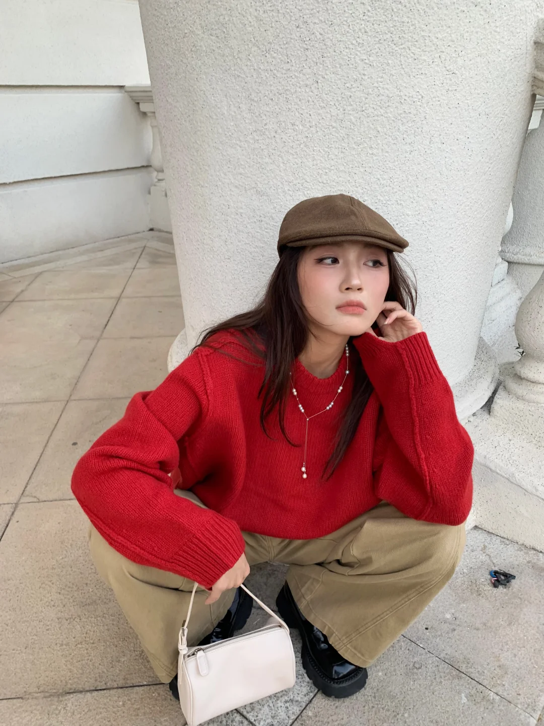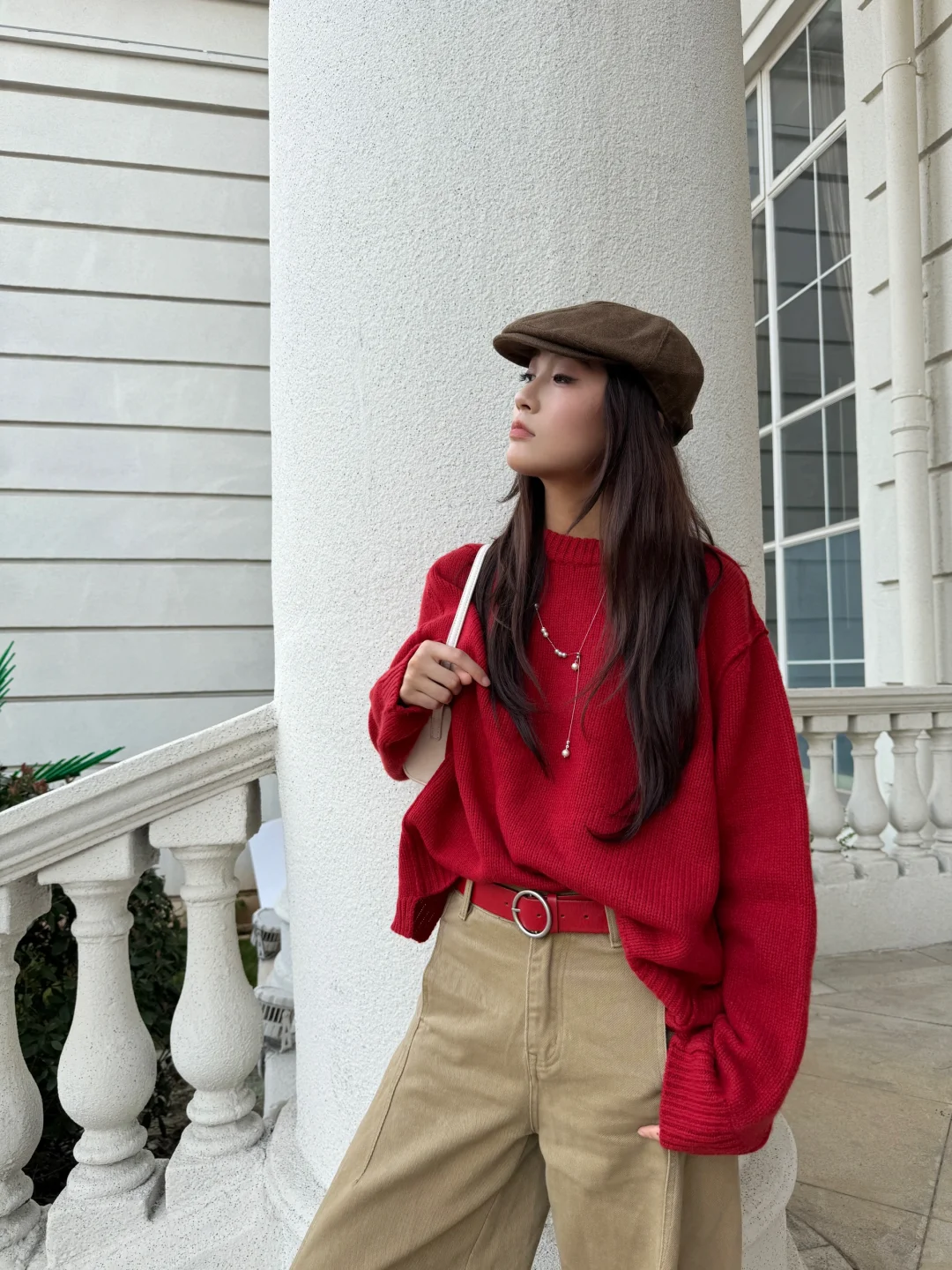 − 发现一个耐看的色彩搭配 红色🔴➕卡其色🟤 超级耐看