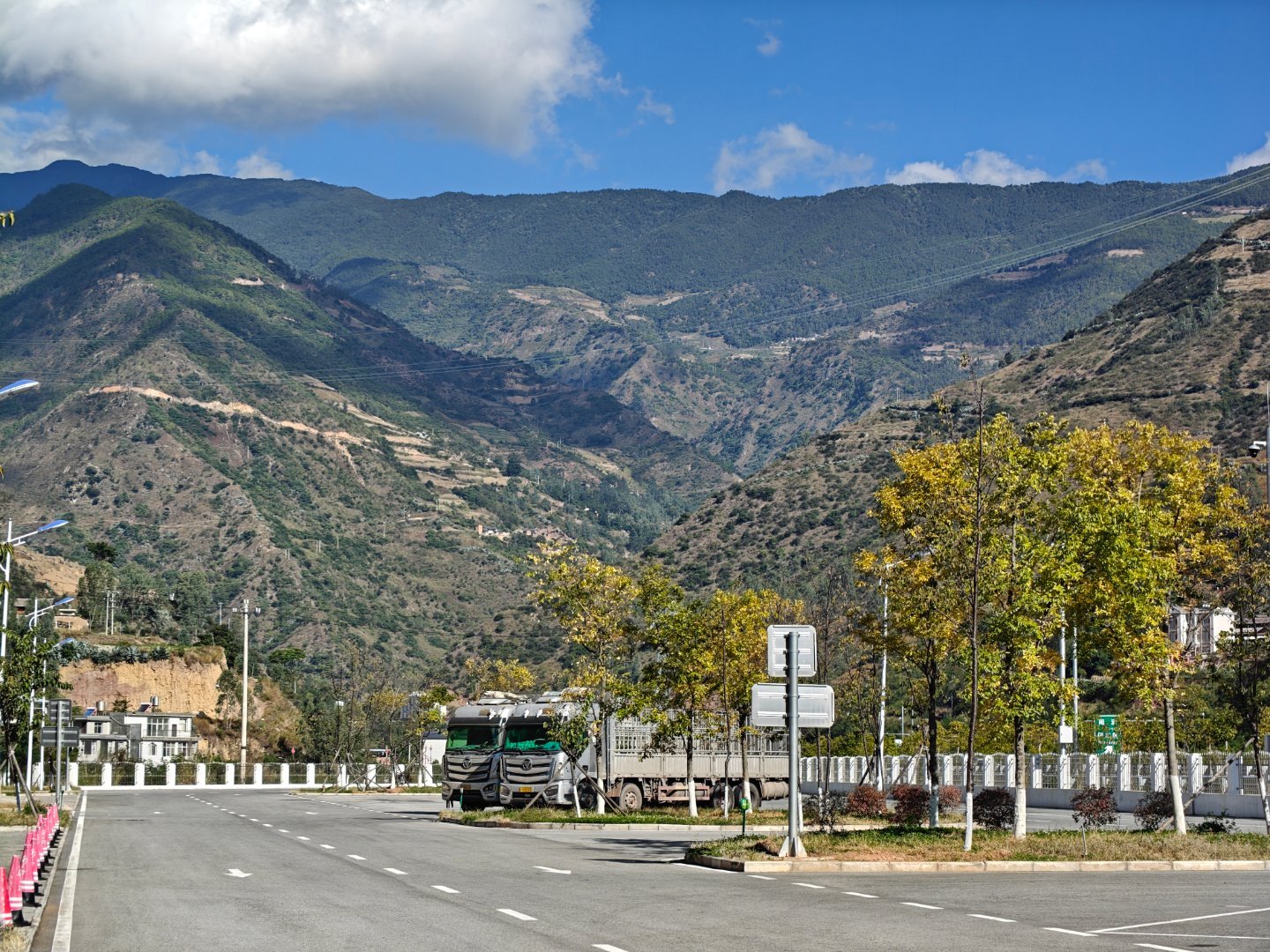 路上景色太好了拍了一张,前后都没车道路还宽