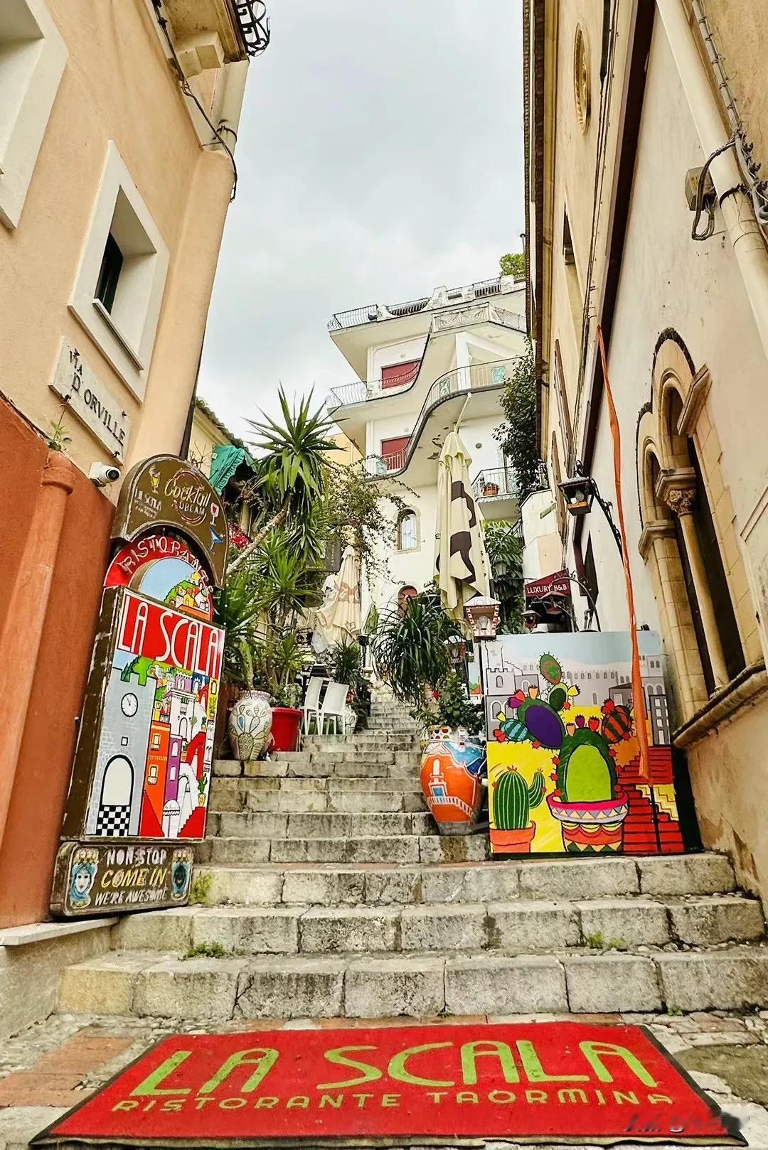 西西里岛东岸的陶尔米纳(Taormina)是座依山而立的古老小镇,公元前400年由希腊人建立。电影《海王》和吕克贝松导演的《碧海蓝天》都曾在这里取景。 小镇最著名的是西西里岛第二大的古希腊剧院,第一大在锡拉库萨。钟情于艺术和生活的古希腊人在面临伊奥尼亚海的山崖上开出了一片平地兴建了这座宏伟的剧院,如今古老的遗迹、蓝天、大海和远处的埃特纳火山交织成一幅意大利特有的画面。 陶尔米纳大教堂建于13世纪,外形像一座堡垒,是陶尔米纳最古老、最重要的中世纪古迹之一,教堂前的广场上有一座建于1635年的半人马雕像喷泉,左手持地球,右手持权杖,是陶尔米纳的象征,陶尔米纳和很多意大利小镇一样没有什么刻意装饰,但你总能在这些自然简单和日常中不知不觉地被意大利人的艺术感和色彩感所征服。