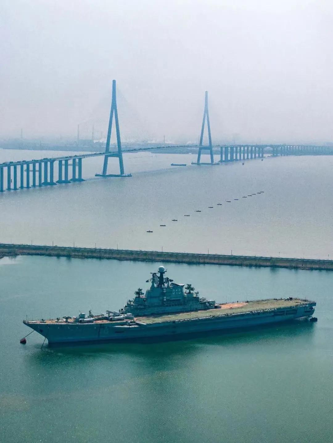 北京赵老师: 从北京来到长江入海口 , 北翼-江海平原, 见长江边停着, 曾经是世界上的第五大航母, -前苏联的明斯克号!