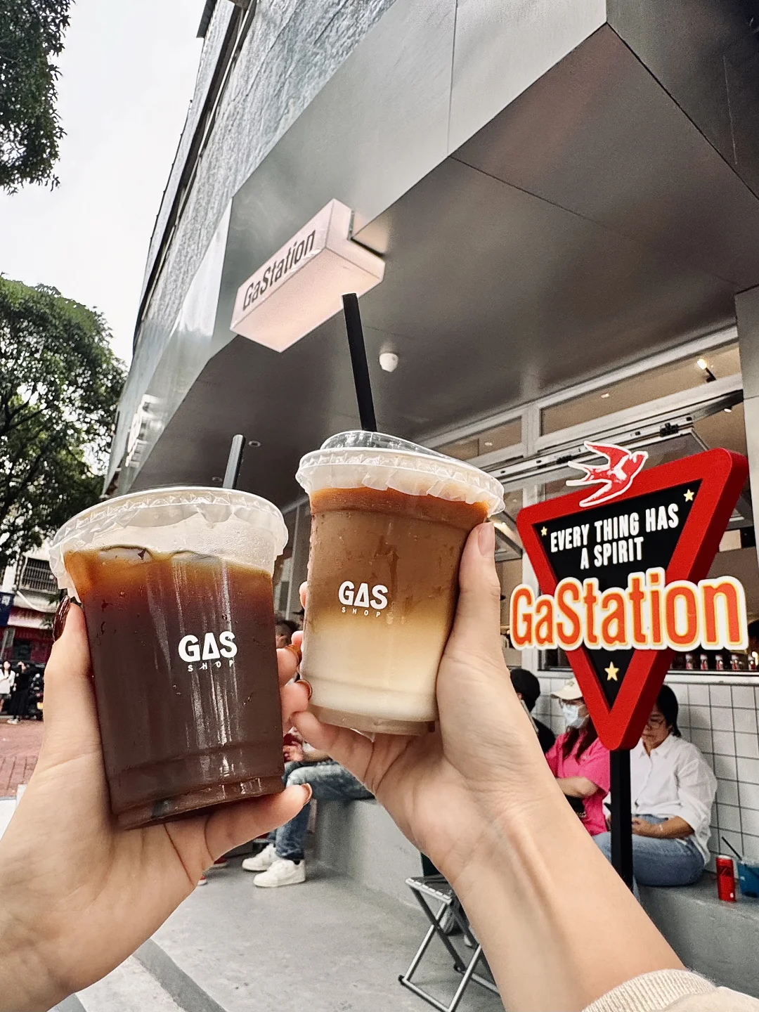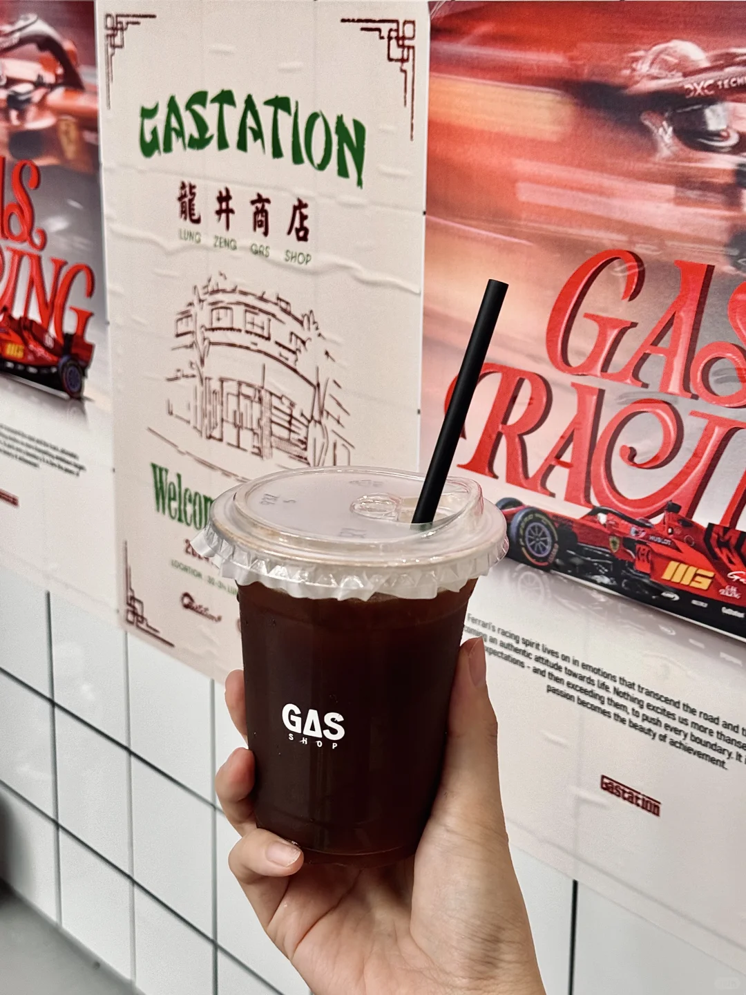 和好子妹来新店啡 差点被潮出风湿hhh 不愧是大V开的店啊!! 今天开业 大半个中山的潮人网红都来了…… 中山人也有属于自己的“中山口”了😁 浅点了两杯啡 🐉龙井拿铁 🍋海盐柠檬冰美式 除了是咖啡店 这里其实还是家潮牌店 是店主自创的潮牌“GaStation” 有衣服、帽子、包包……可以来逛逛