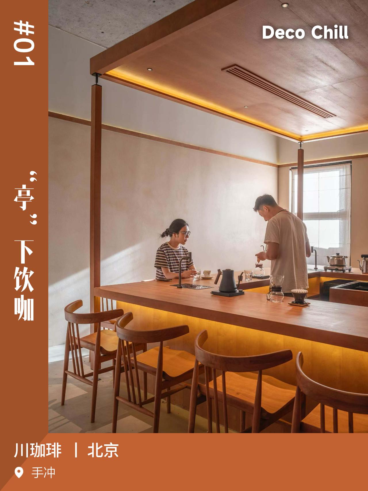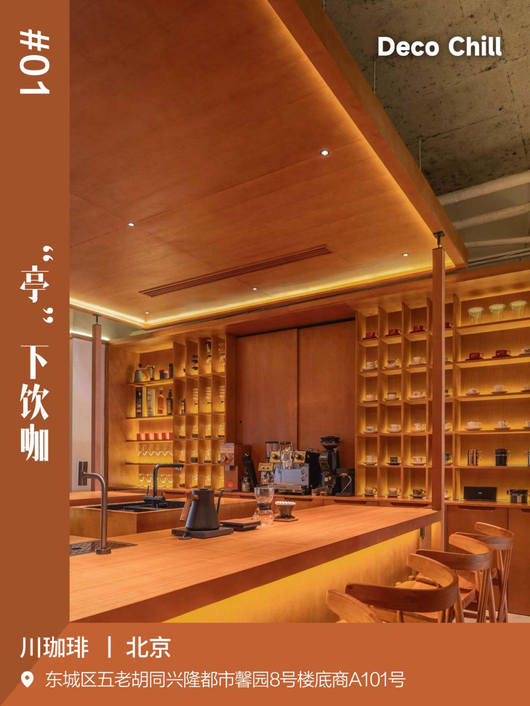 设计师利用空间挑高设计了亭子造型的吧台,将三面的客人由此聚拢在一起。“U”形吧台的运用方便了中间的咖啡师在三面之间自如洄游,极大提升了咖啡师出品的效率,同时也照顾到每一位客人与咖啡师的距离。