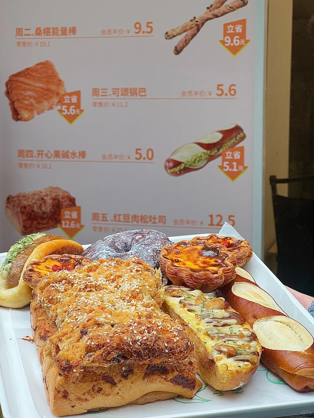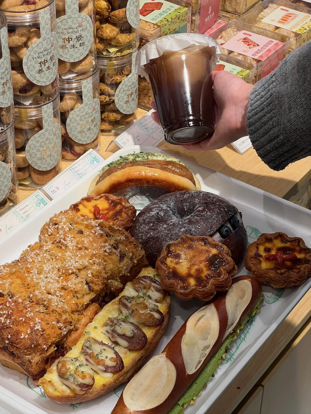 吃下这一口烟火气 国贸新店!超多活动等你来!!! 中午来的时候简直惊呆了!! 满!柜!的!🥐🥯🥖🥨现!烤!面!包…!!! 居然还有枸杞蛋挞!!养生达人必备的品😭😭😭