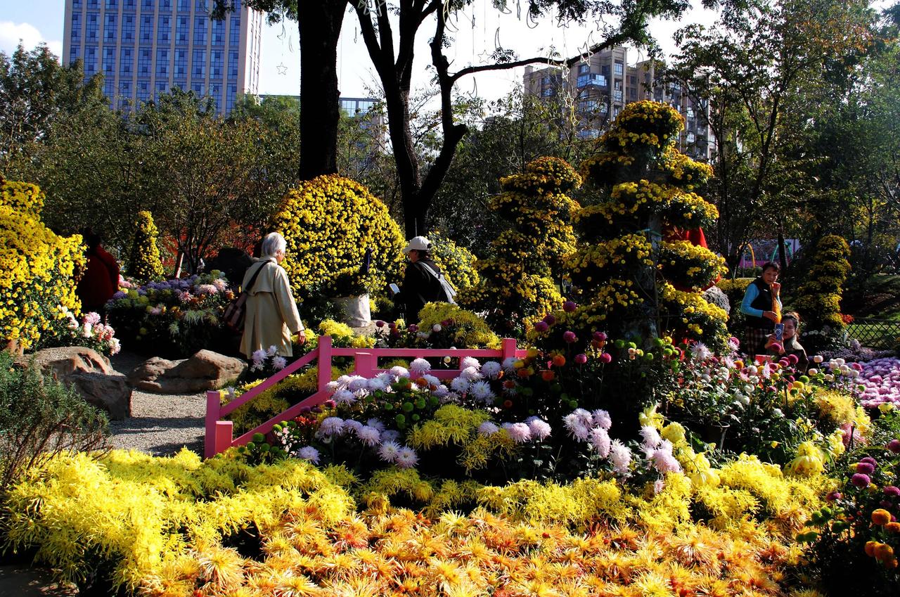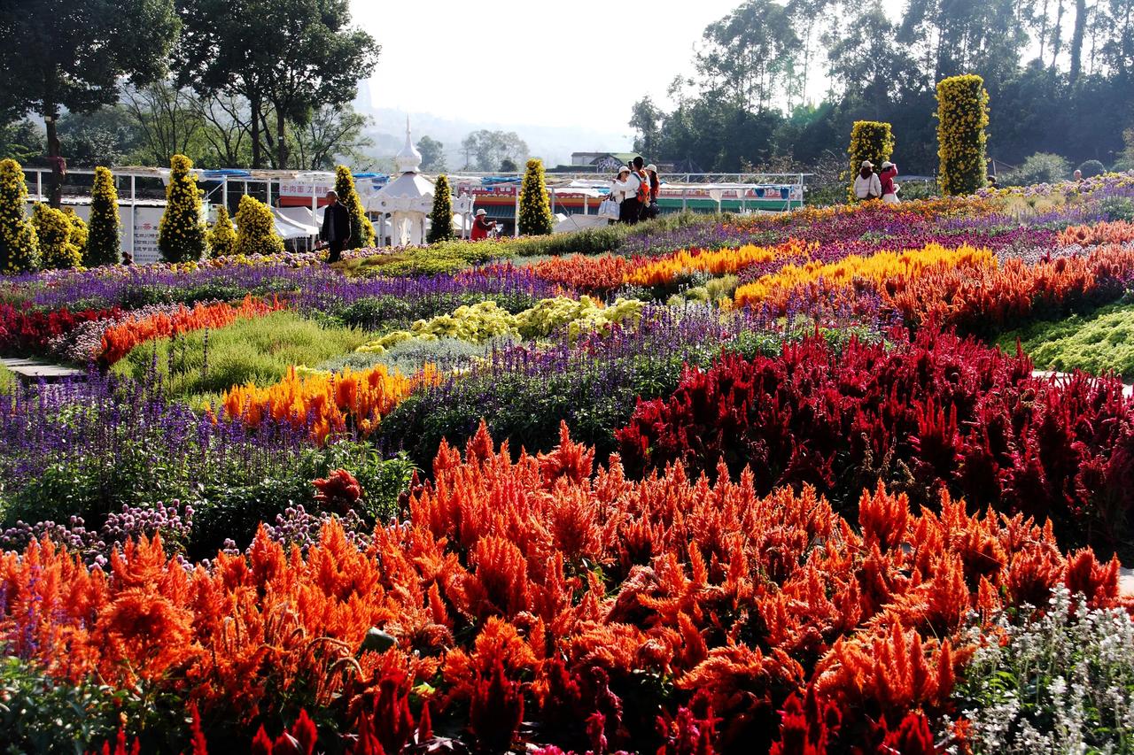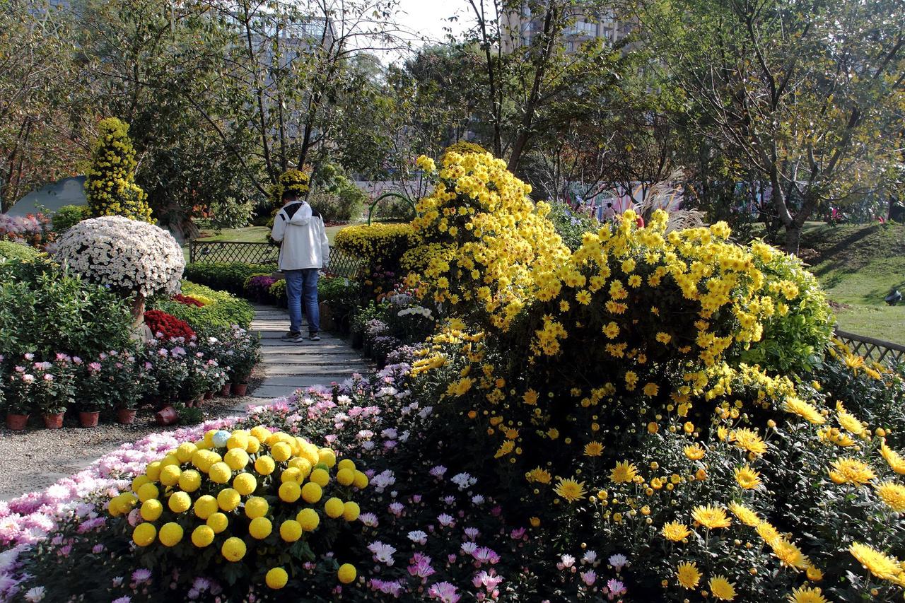 【漫花庄园的斑斓花海】20241120 连续阴雨,今日天晴。冬阳温煦,蓝天白云。好多天没出门,好天气,当然要出去走走。想去的地方很多,最终还是选择了漫花庄园。可能不是最好,肯定不会失望。果然如此,看到了冬日里璀璨的斑斓花海。 人民公园的菊展令人失望,想在漫花寻点找补。然而,这里的菊花同样一般般,并不出彩。但也有特色,各种造型是用了心的。不觉得多好看,但有阳光加持,也就光彩夺目,挺漂亮了。尤其是做背景板,是杠杠的,深受大姐大妈们欢迎。 感觉最耀眼夺目的是九曲花海。各种小花,色彩鲜艳,组成一块块色块,然后拼成偌大的花海,斑斓绚丽,美艳无比。遗憾的是花株都较矮,气势差了一点,拍片有点难。 天气好,走到山顶,顺便拍点园景,无花也漂亮。 随手拍公园里的菊花