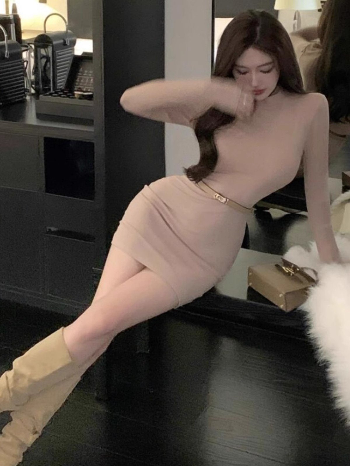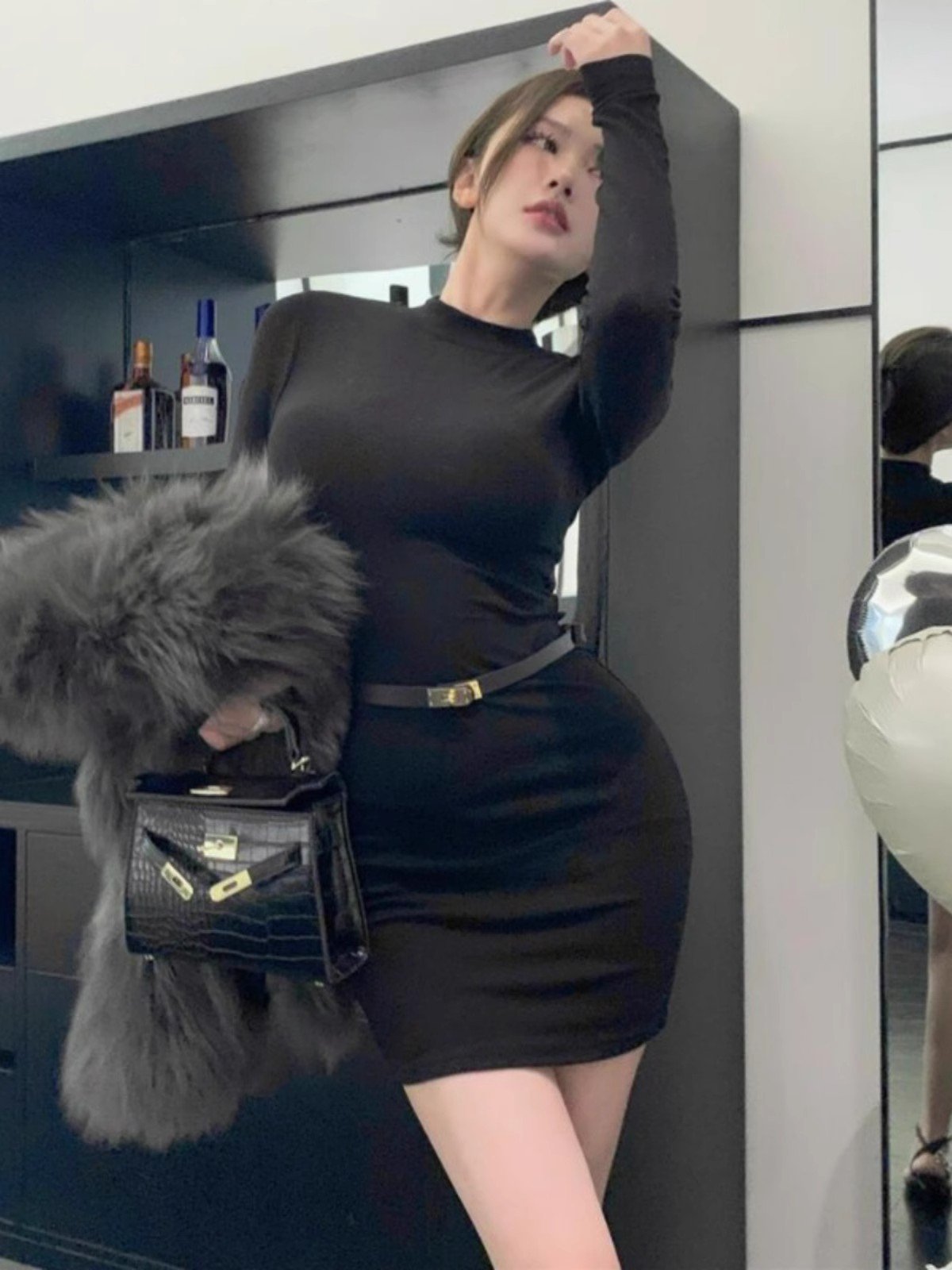 性感纯欲黑色长袖连衣裙女秋冬小个子内搭