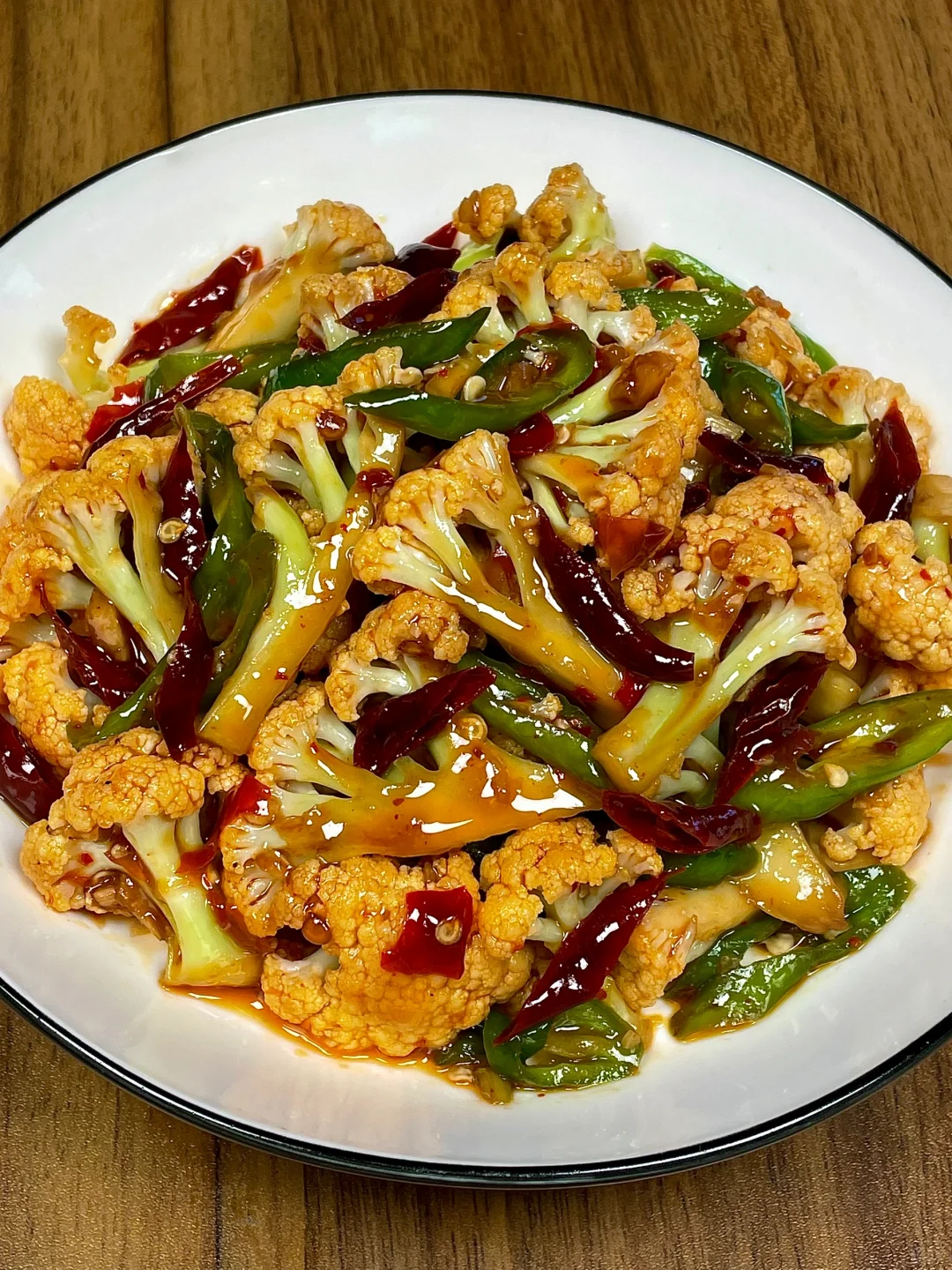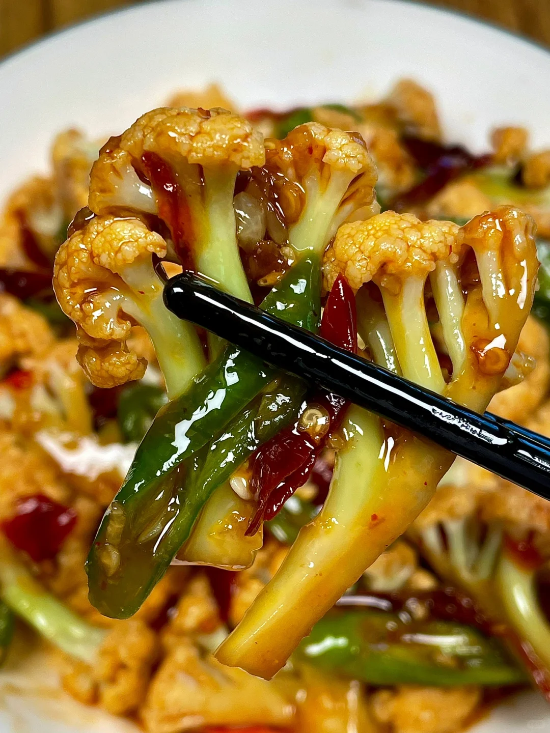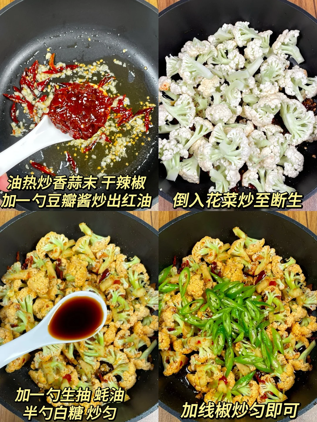 好吃到哭的干锅花菜!你们一定要试试!! 花菜一口脆嫩,香香辣辣的,完美复刻出饭店的味道,真的超好吃[哭惹R]做法简单不翻车,求你们都去做!! [向右R]食材:花菜➕蒜末➕干辣椒 [向右R]做法:如图所示!