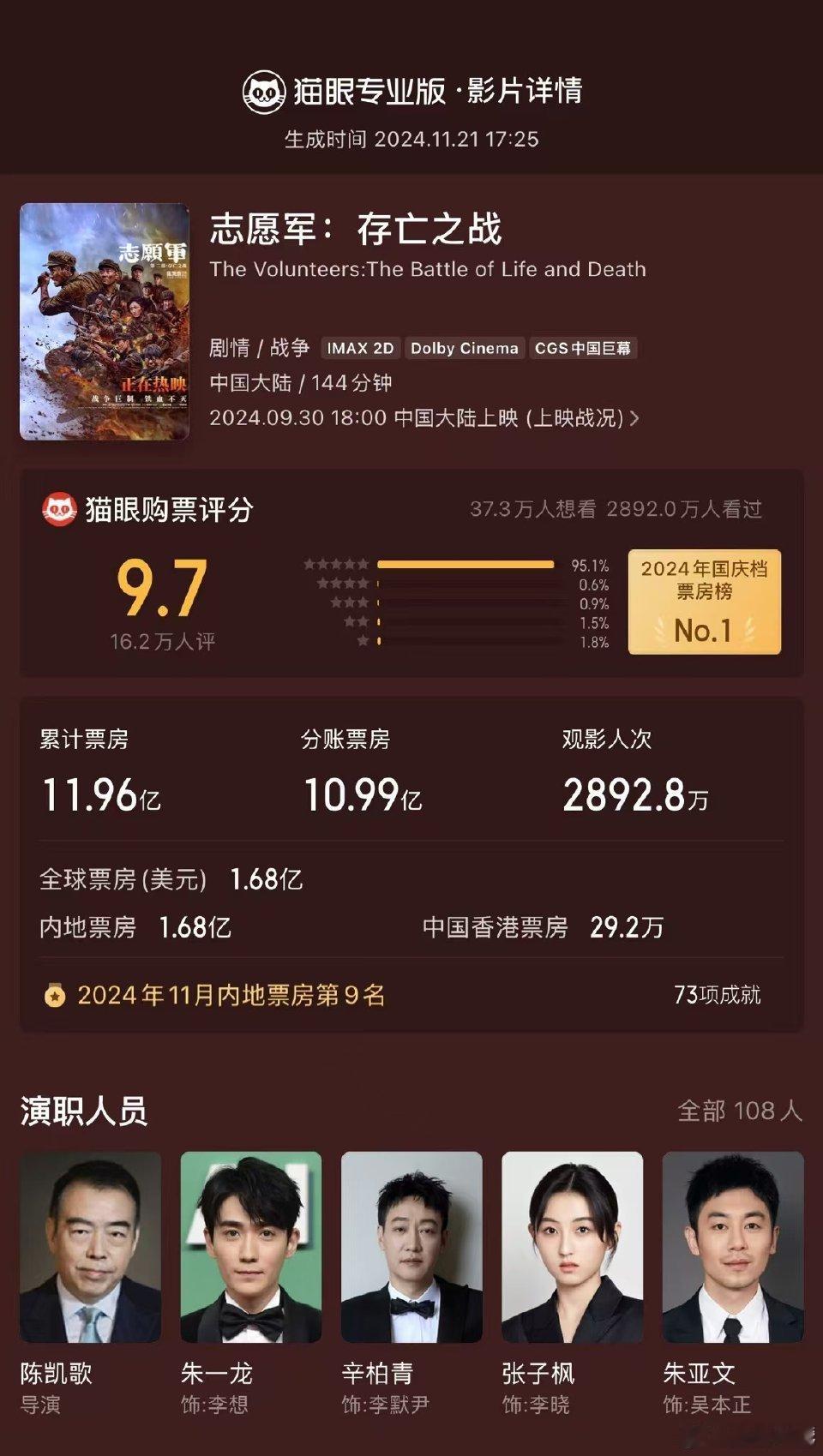 志愿军存亡之战延期上映至12月29日 [打call] 朱一龙李想 [努力] 电影志愿军存亡之战 [good]真的是个好消息,国庆档最棒的电影 电影志愿军存亡之战 又一次延期,一部特别值得中国观众观看的向志愿军英雄致敬的大片,希望更多的观众前往影院观看![打call][打call][打call]