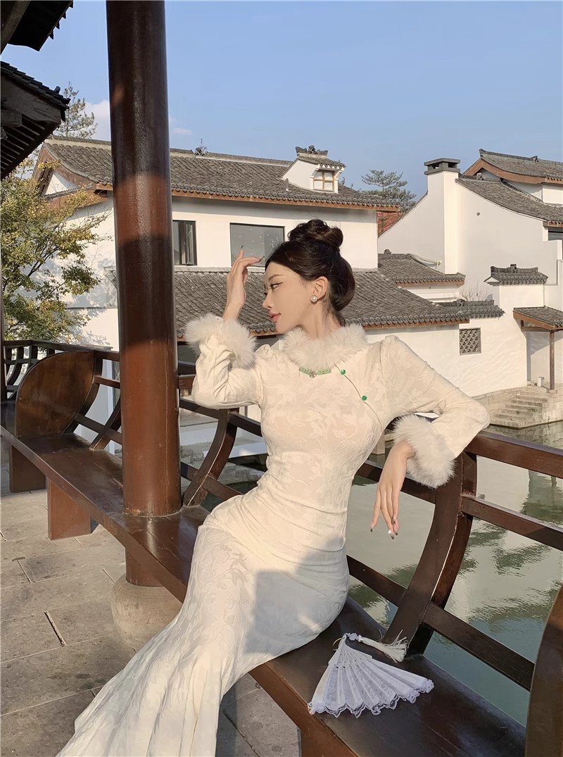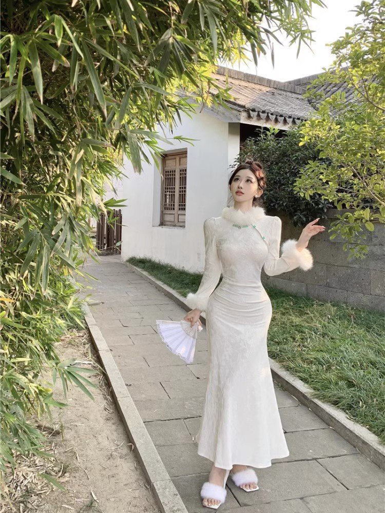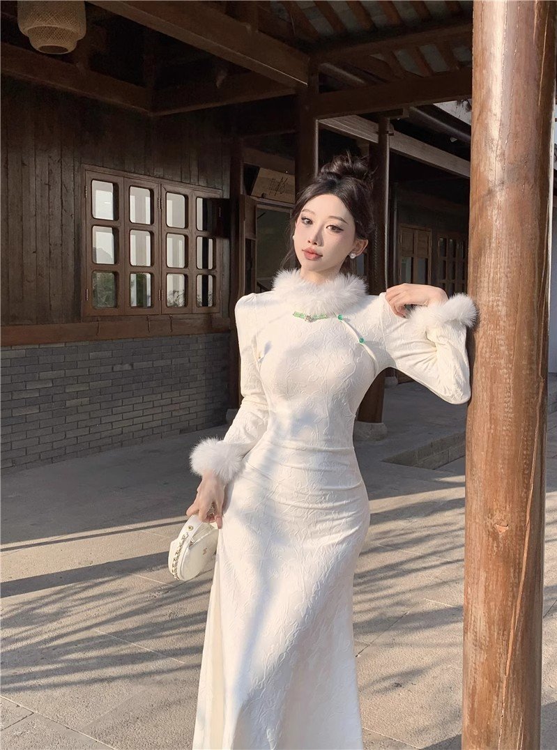 新中式国风改良旗袍加绒加厚连衣裙女秋冬