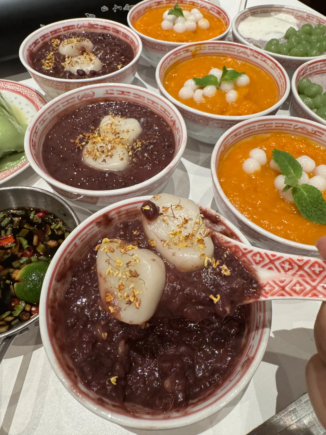 真的超爱这家糟粕醋火锅,来吃过5678次了,糟粕醋锅底酸辣开胃。活虾、生蚝、文昌鸡,都非常新鲜,还有入冬四件套,南瓜羹、红豆年糕汤、芋泥奶盖、热红酒。椰子饭、芒果肠粉和斑斓椰蓉包也一如既往好吃