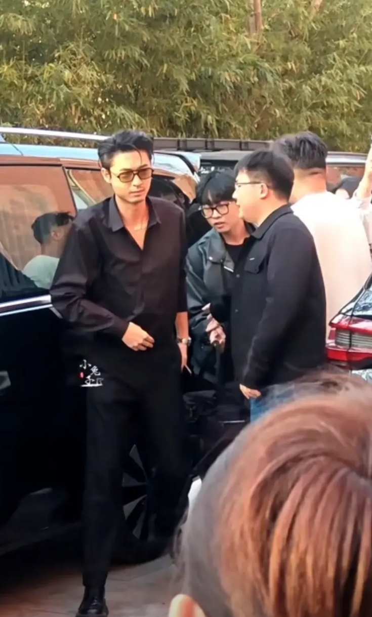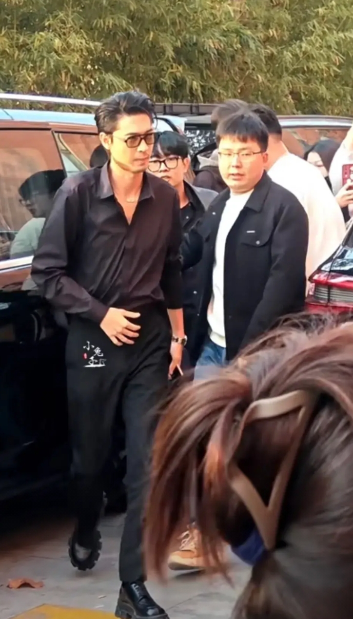 11月23日,秦霄贤塌房后首露面 从奶狗变成狼狗了!穿一身黑,带副墨镜,胡子拉碴
