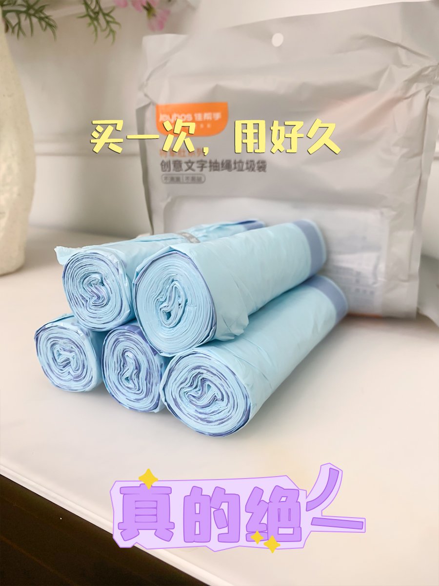 家人们我可太会买了!跟我之前用过的其他垃圾袋相比它真的太优秀啦🎈创意文案经典有趣。手提式的设计,提拿不脏手更方便🤣质量更是没得说很厚实,不容易破掉,防漏形也是一流,装厨房的汤汤水水也没有问题👍抽绳加宽设计特别贴心这么好用的垃圾袋,家人们快冲呀!!!🌸🌸🌸