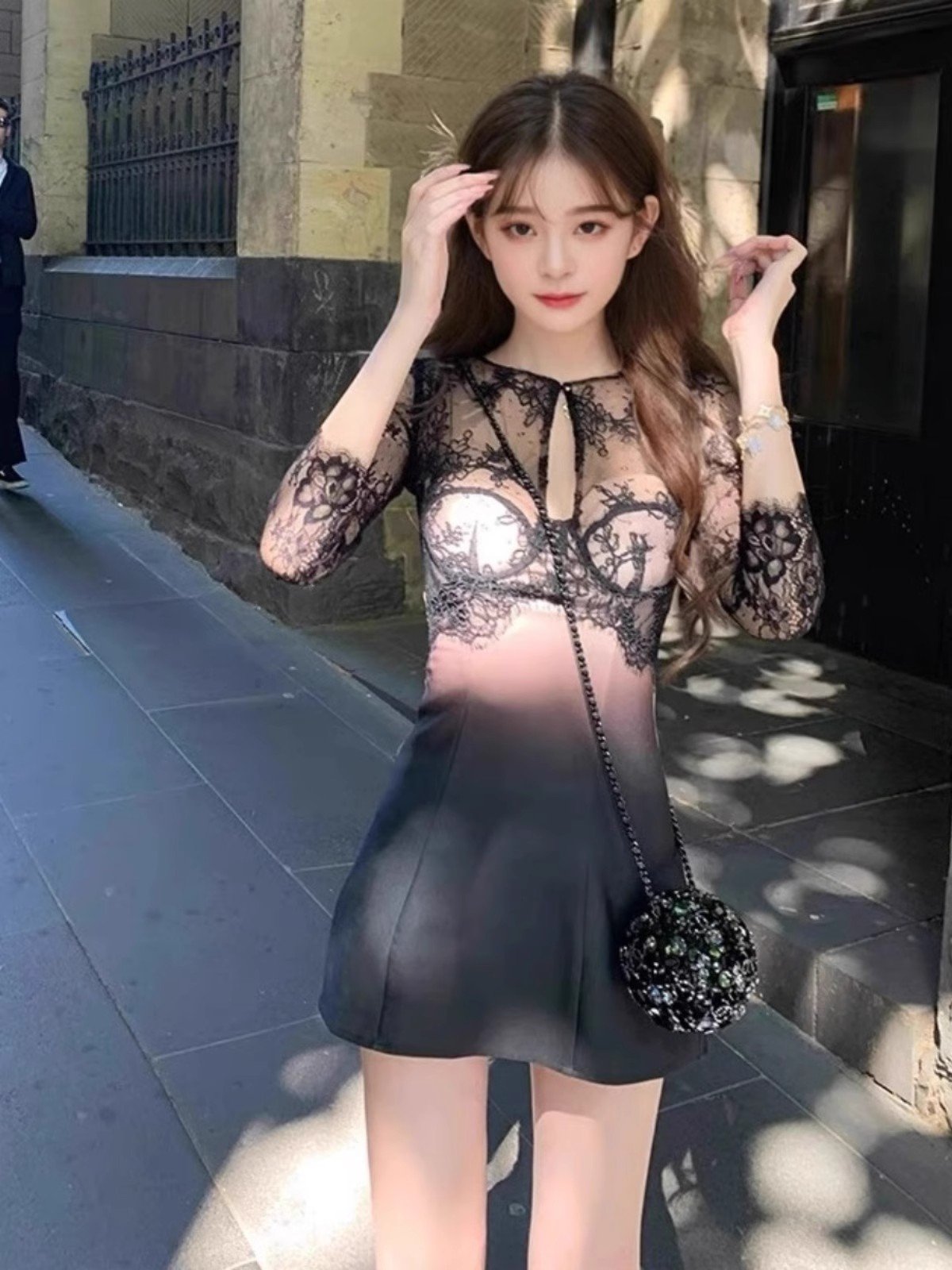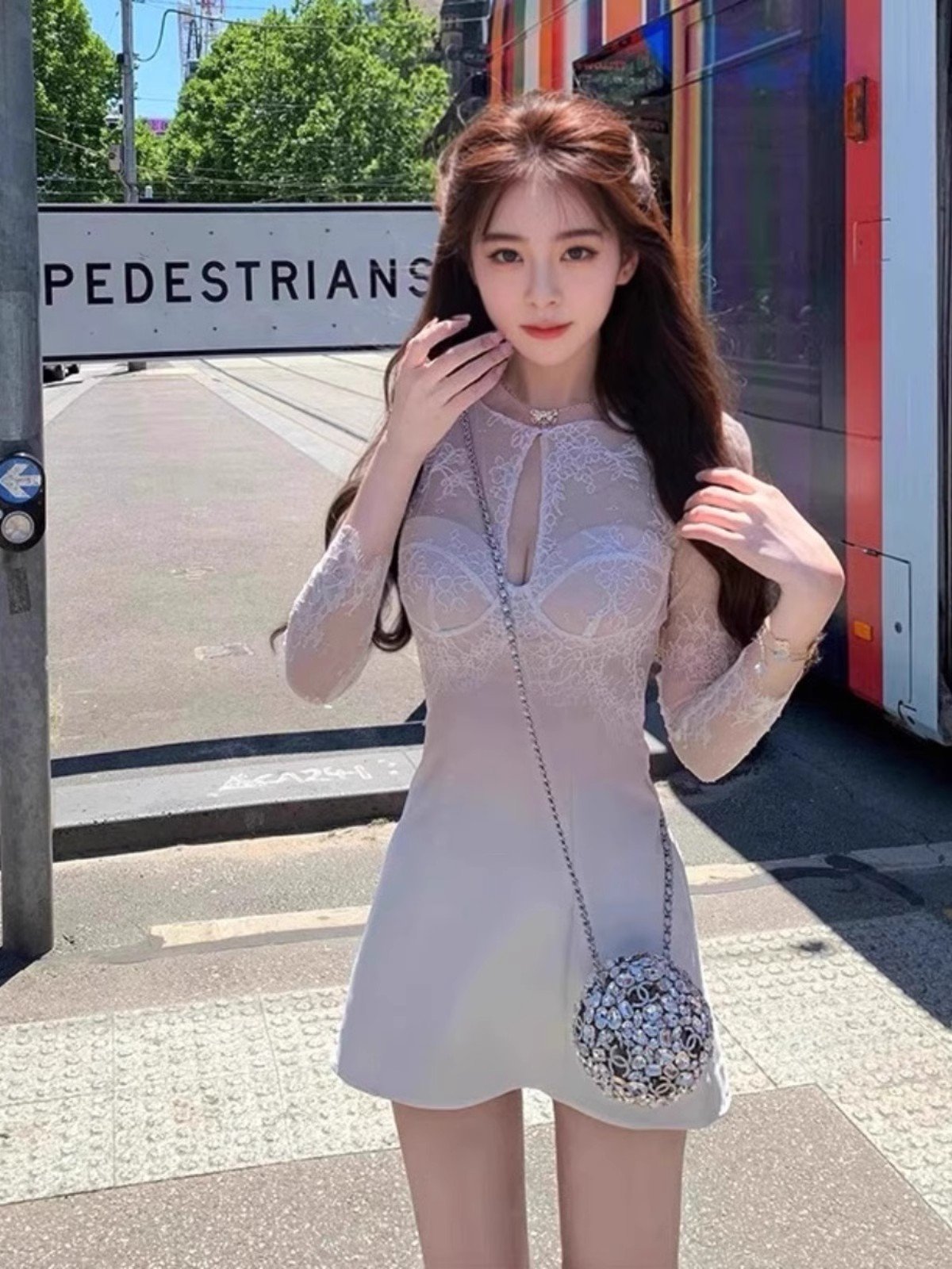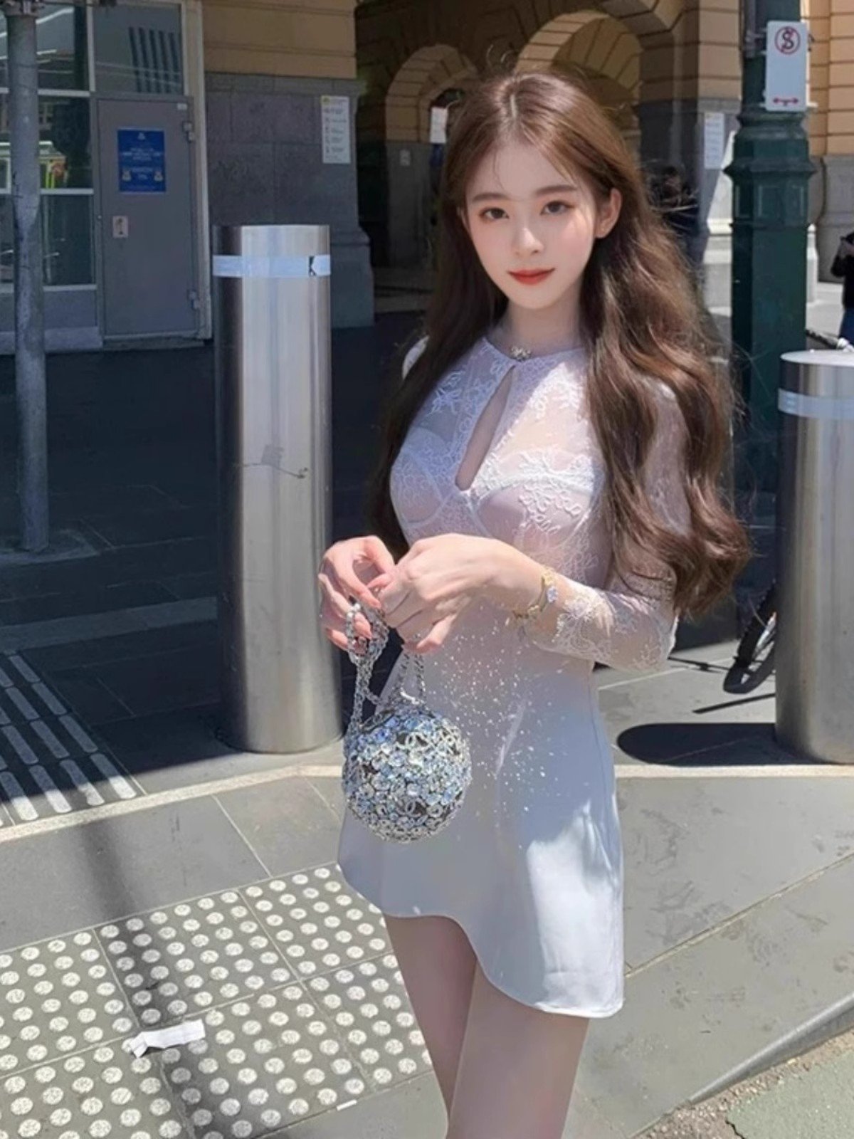 性感白色镂空蕾丝内搭连衣裙女入冬小个子