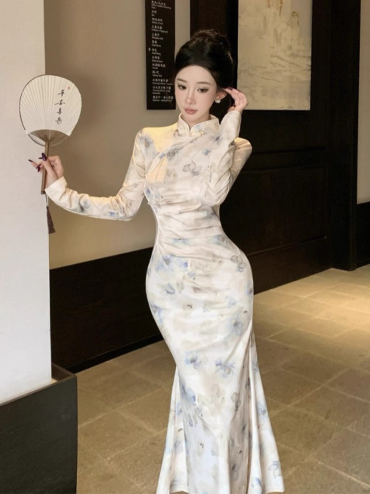 新中式改良旗袍连衣裙女秋冬年轻款少女日常