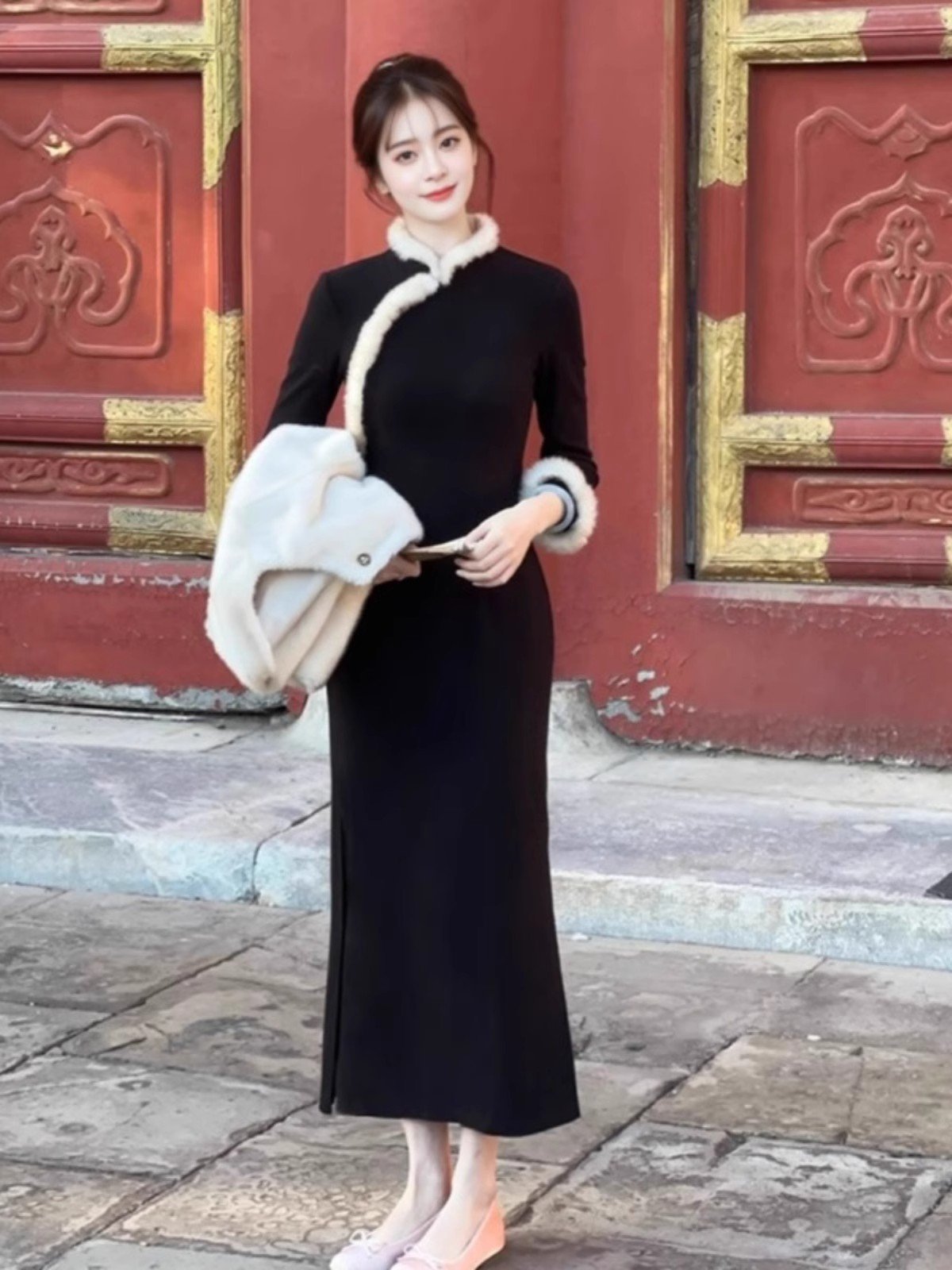 新中式改良旗袍连衣裙女秋冬年轻款少女日常