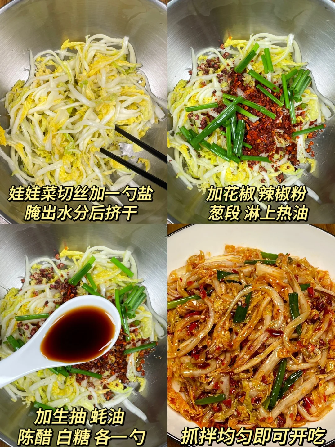 香辣下饭的凉拌娃娃菜,这么做真的好好吃啊[哭惹R] 口感鲜嫩脆爽,开胃解腻超下饭!配粥配饭我能炫两大碗[色色R]做法简单不翻车,求你们都去做!! [向右R]做法:如图6️⃣所示!
