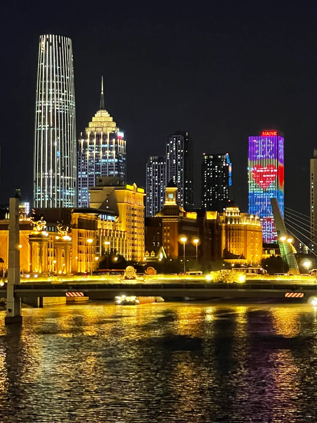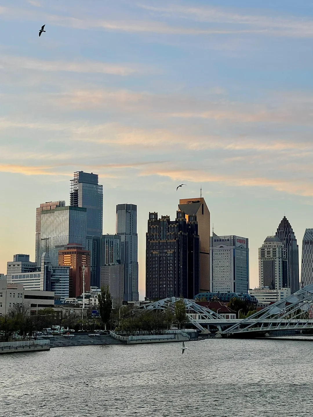 直沽桥往小白楼方向确实不错 不过亮灯➕黄昏 太难等了 海河下游还有好多桥 还需要友友们自己开发 漂亮滴