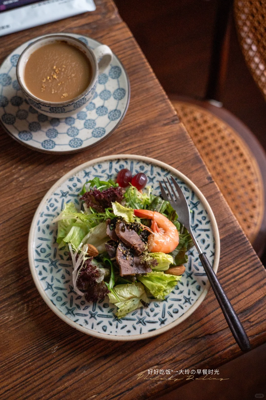 一人早餐|虾牛蔬果沙拉咖啡☕️