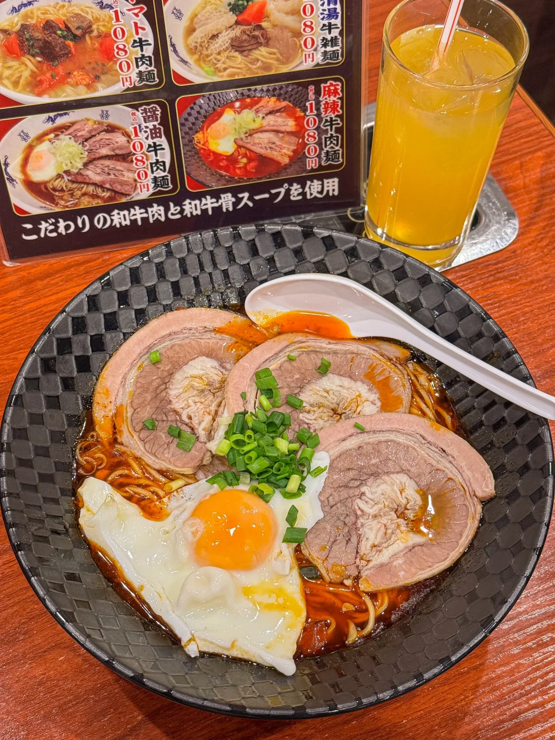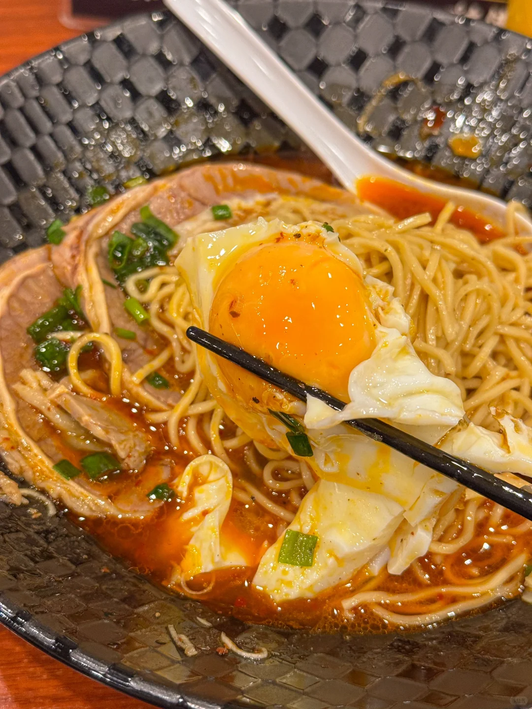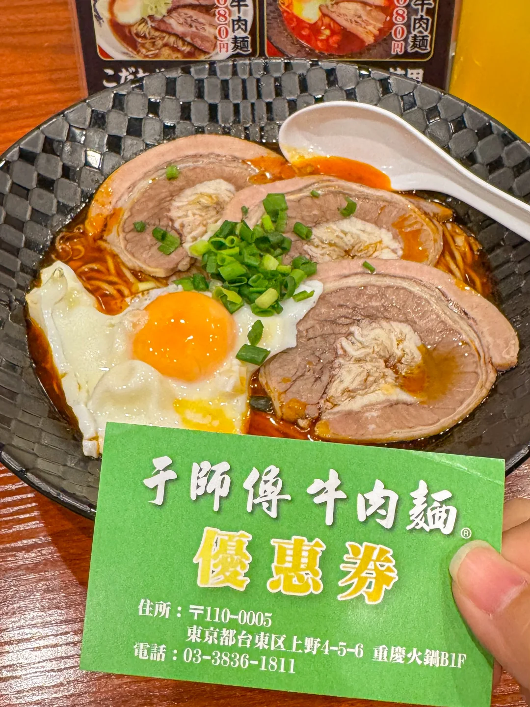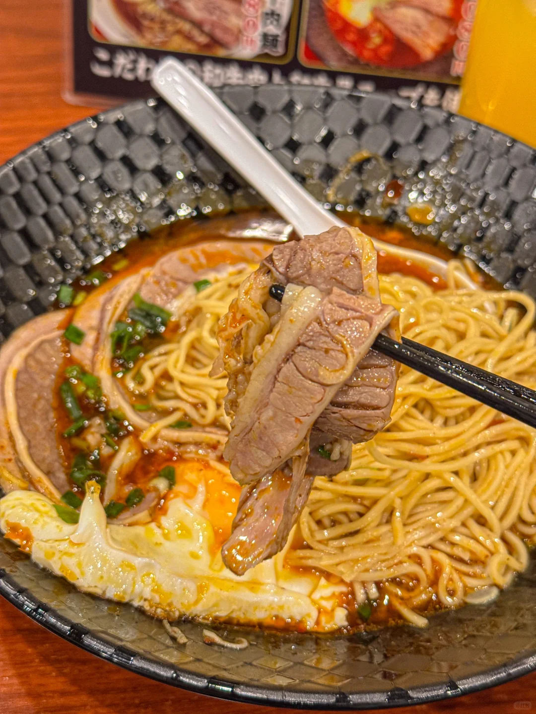 喜欢日本集章打卡🥰 🍜吃了好多次终于集到啦~ 于师傅牛肉面 大片牛肉很满足,还有一颗荷包蛋 牛肉汤底浓郁醇厚 混合了牛肉的鲜香和调味料的丰富层次感 有三种面条可以选择粗细~ 我觉得细面最好吃 有劲道