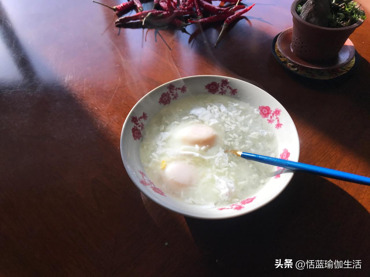 退休生活日常 今天的气温12度到9度,早上醒来有点寒意了,所以慵懒的状态产生,坐床上看了会书,又刷了遍视频,实在觉得在床上是浪费时光,果断下床,这个说法真是有点不好意思。 太阳已经高高挂起,今天得先干活再吃早饭了,把冬天的毛衣类的衣服裤子拿出来,挂到阳台外面去接受阳光的普照,杀菌!我这是在抢太阳吗🌞![大笑][比心] 早餐的时间就偏晚点了,看到厨房有上周自酿的酒酿,那就来碗酒酿鸡蛋吧!今天的鸡蛋做的特别好圆整没有破哦!还有点溏心呢!太棒了,我好像掌握了一个新技术哦! 大家会做吗? 感谢您的到来。
