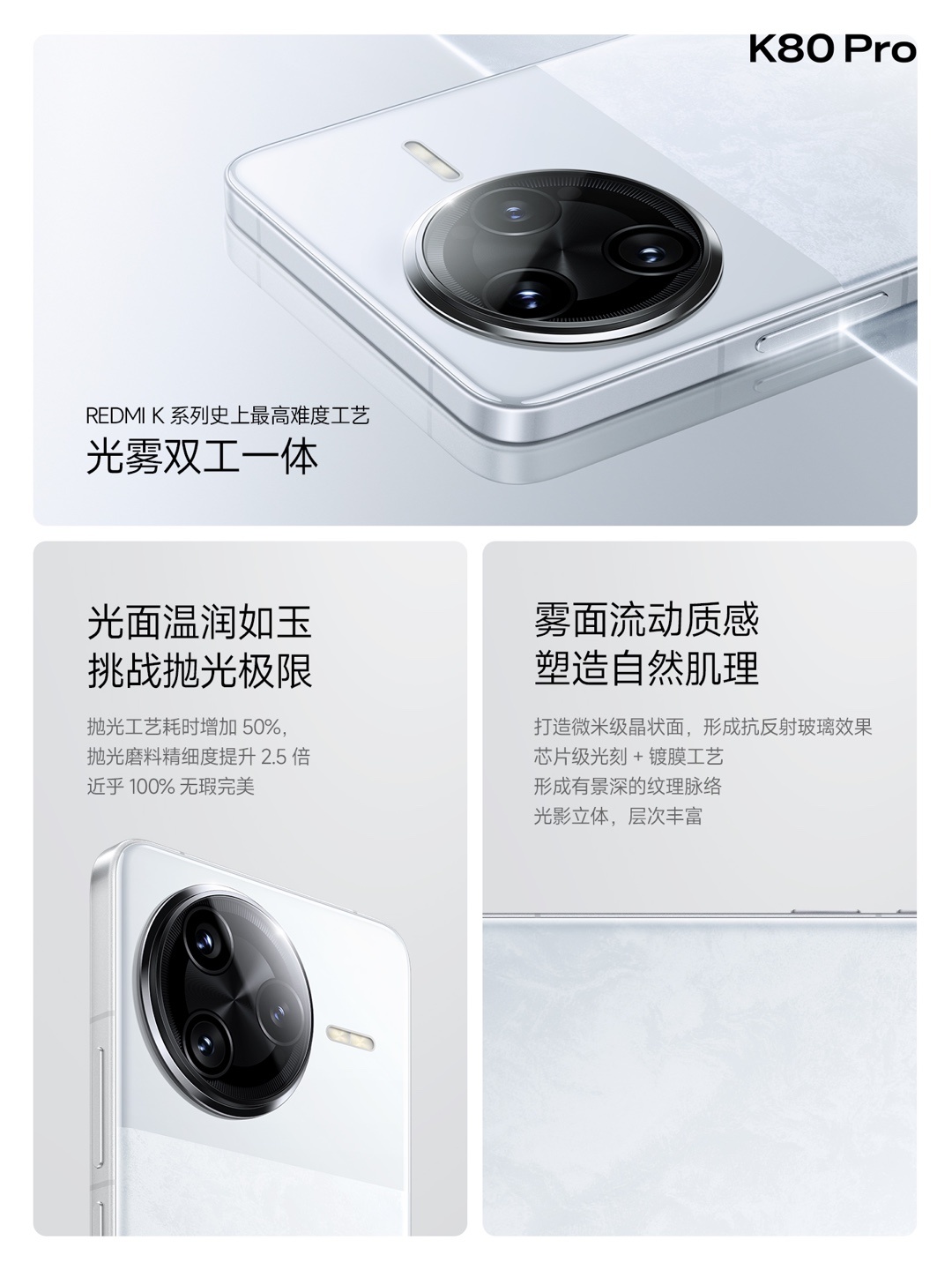 红米K80发布会 红米K80 Pro 这次设计真的有进步啊!首先是无孔化顶部设计,简洁又好看,超优雅!50:50 的配重,电量加了 1000mAh,但重量一点没增加,真的是牛了。背部的光雾双工一体工艺,看着太精致了,做工也很高大上!下边框超窄,比上一代缩了 21%,一眼就让人惊艳。