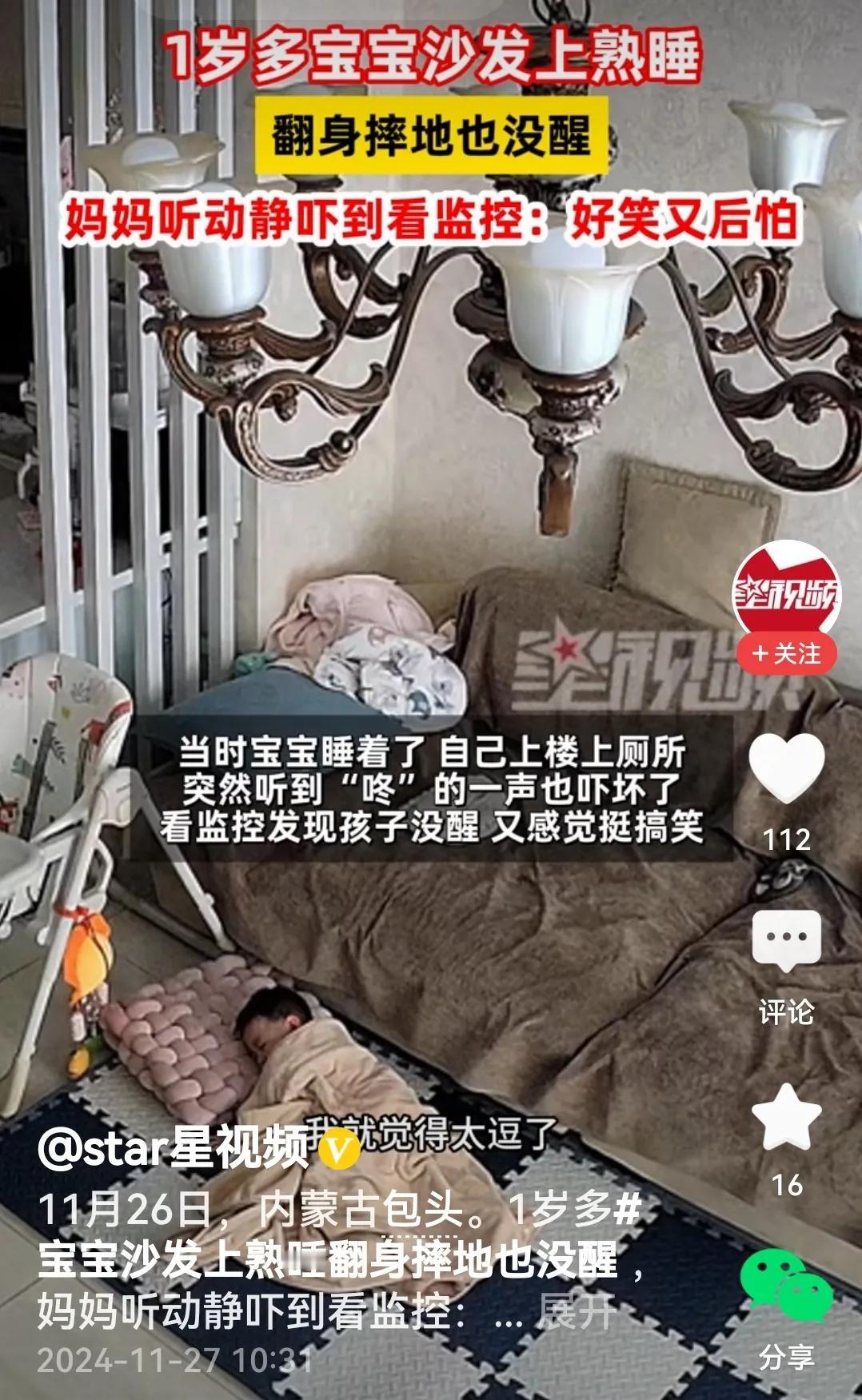 还真是,视频里的宝宝沙发上睡着了,一翻身掉地下了。掉地下了咋办呢?接着睡,够皮实的。 话说回来,宝宝我(65岁)睡觉不老实,偶尔会掉地上。最严重的一次第二天早上楼下的邻居问老伴:昨天晚上你家立柜是不是倒了?老伴解释说:哪儿呀!俺家老头子睡觉不老实,掉地上啦! 结果呢?老伴下决心给我买个这玩意儿(图3)让我用,我不愿意用,老伴说:宝宝听话,宝宝听话。然后我就听话了。还别说,打那以后,我晚上睡觉再没掉地上。 (内容取材于网络)