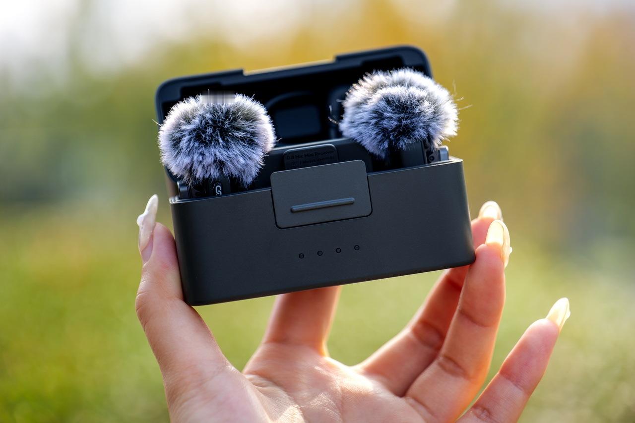 一体式充电盒可以容纳两个发射器、一个接收器、3.5毫米TRS线以及防风罩,塞在衣服口袋就能出门。