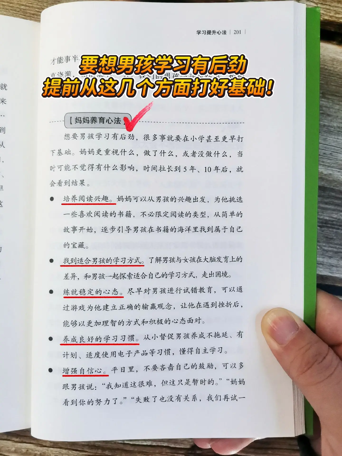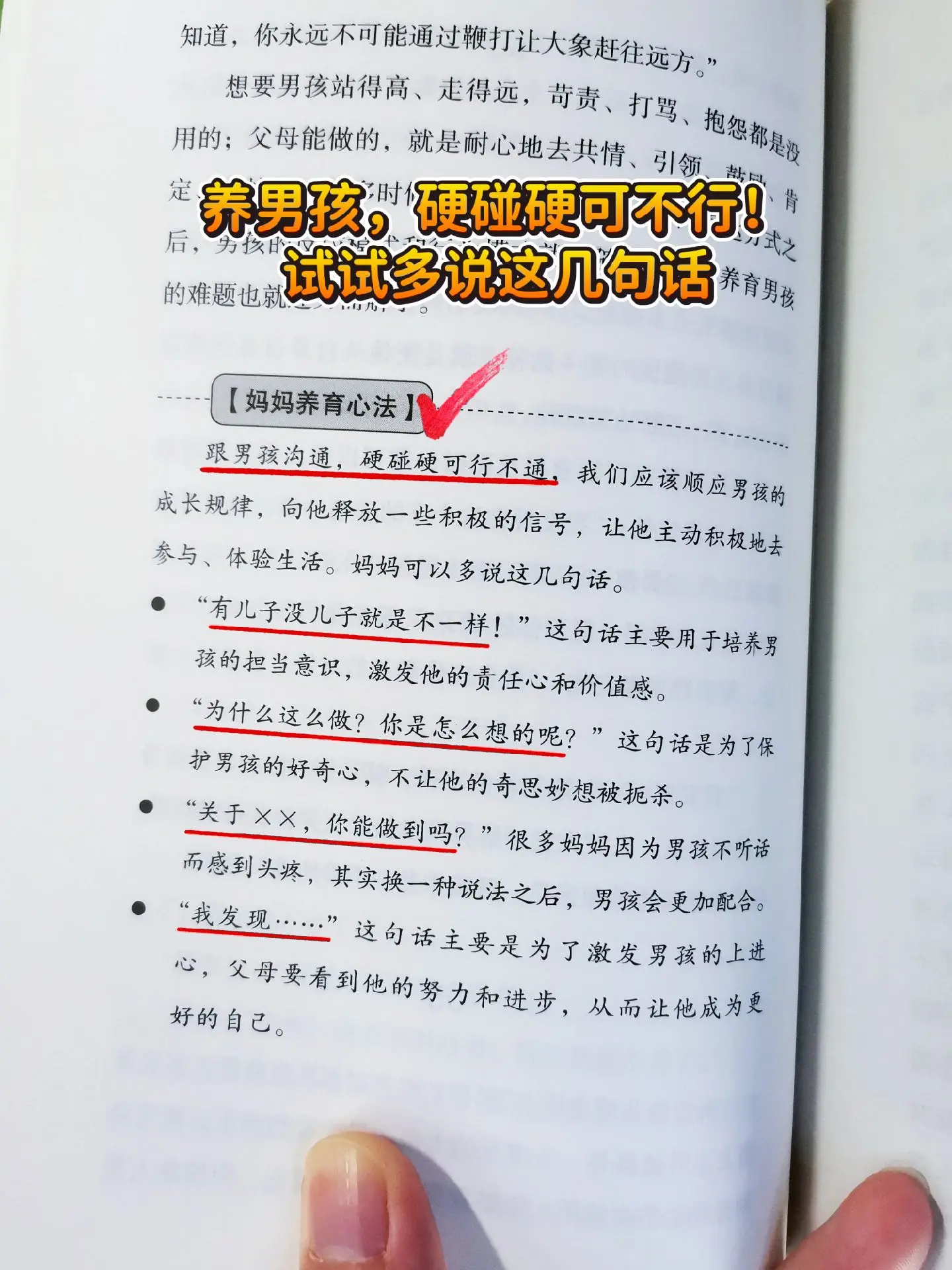 家有男孩,用对方法很重要!✅有男孩的家庭一定要注意,千万别和孩子硬碰硬,尽量避免用打骂的方式。 👉试试这本书里的方法,和你一起轻松搞定不听话、坐不住、爱捣蛋、不自觉的男孩,男孩妈妈必备书单!