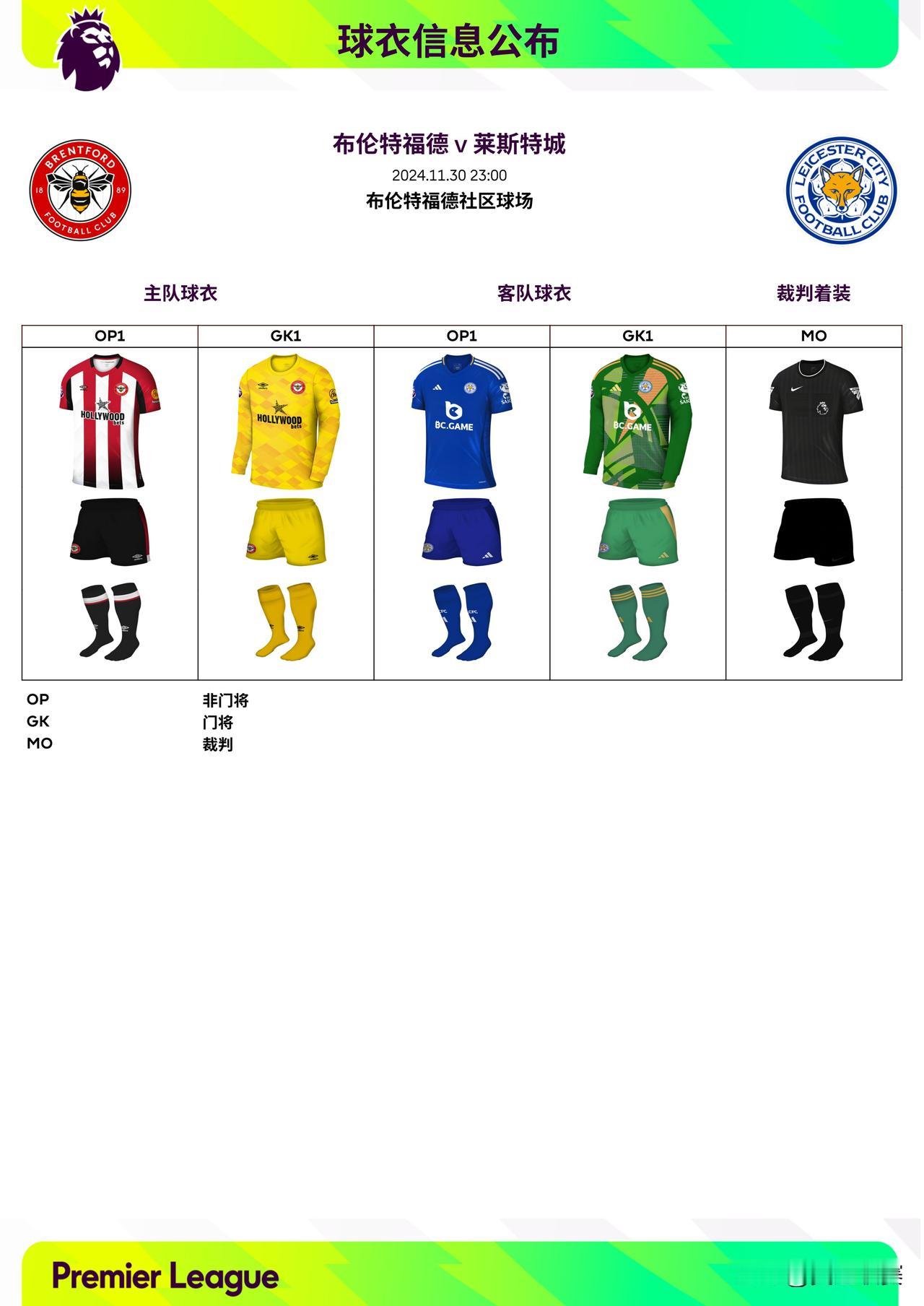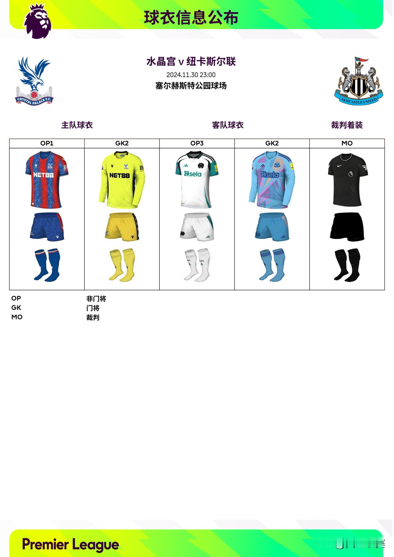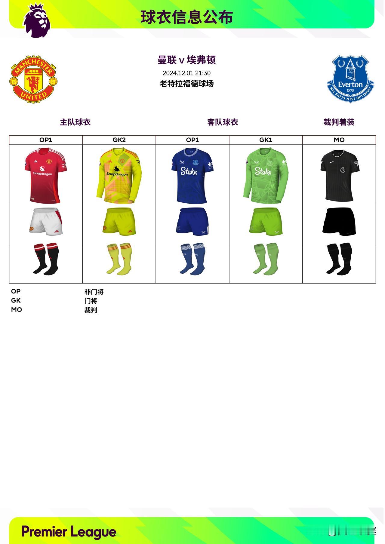 2024/25赛季英超联赛第13轮球衣信息: ◉ 焦点战——利物浦迎战曼城,双方均穿主场球衣