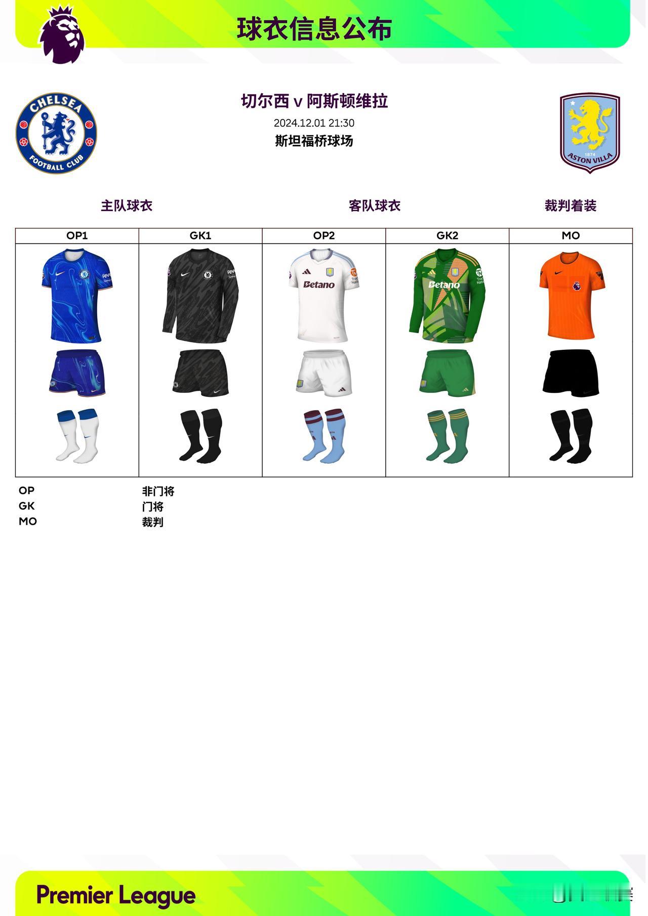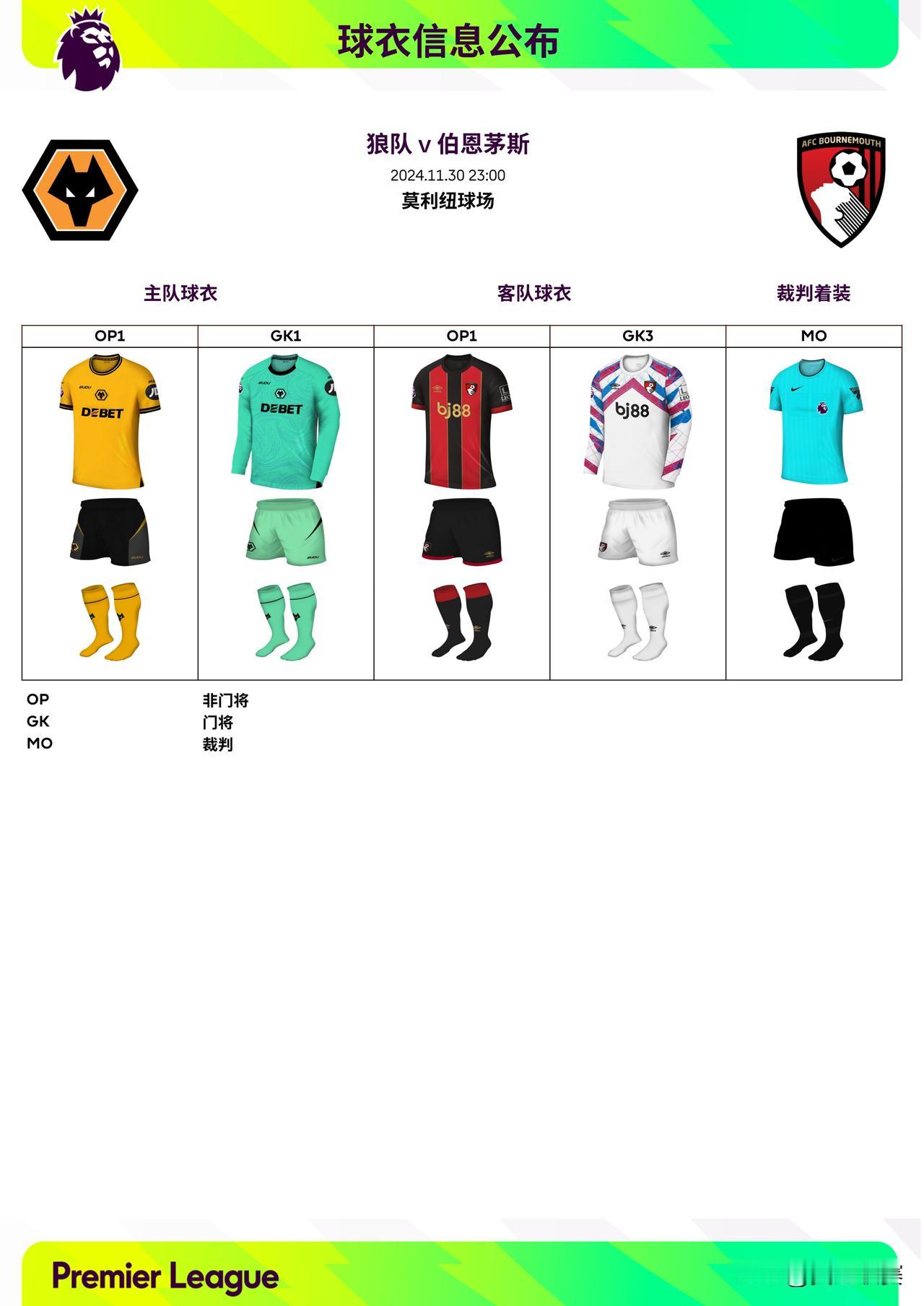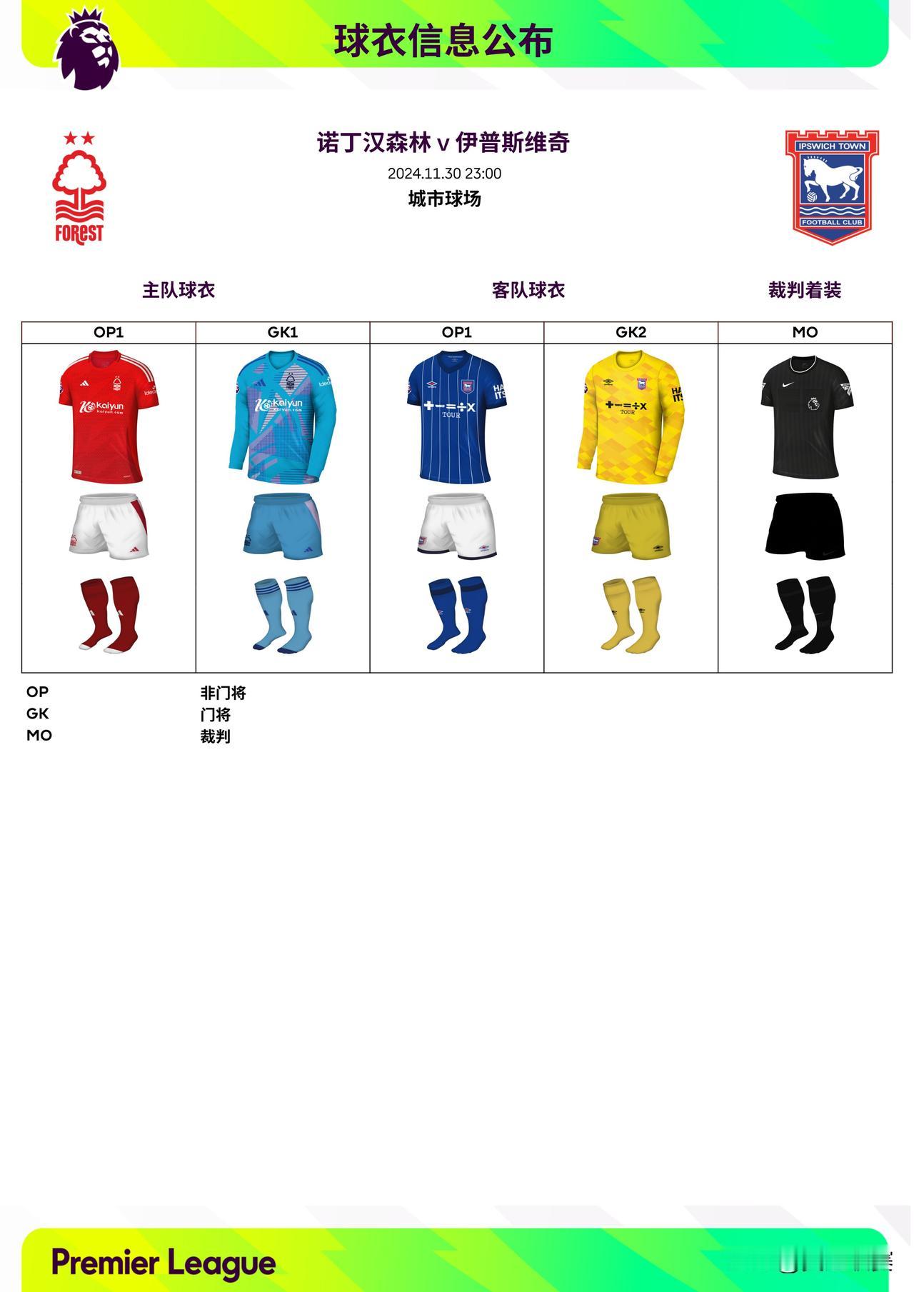 2024/25赛季英超联赛第13轮球衣信息: ◉ 焦点战——利物浦迎战曼城,双方均穿主场球衣