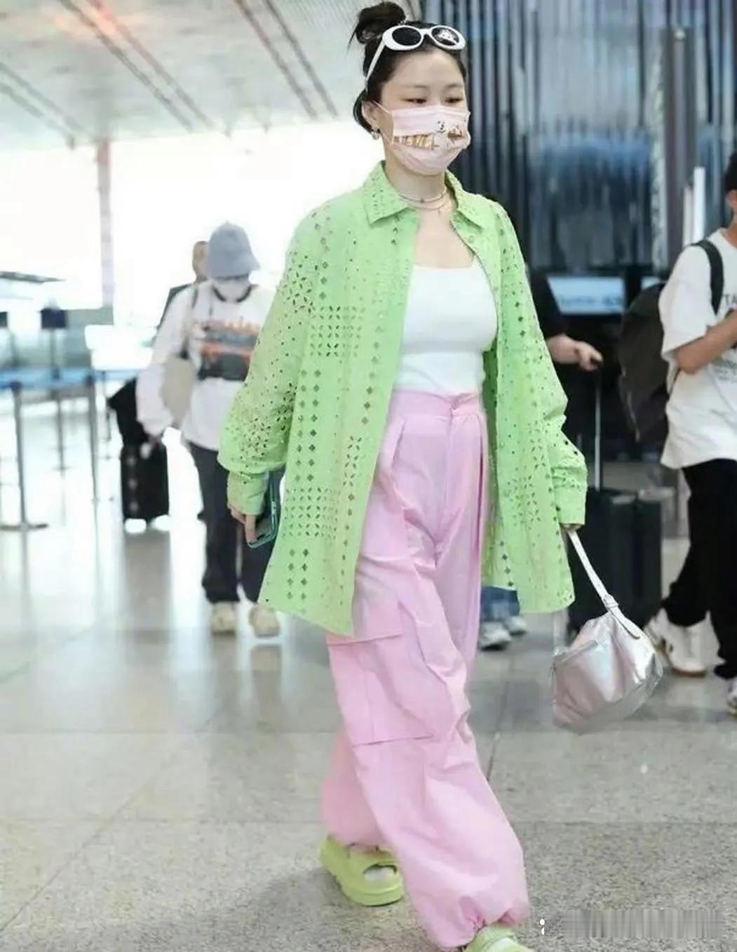 吴艳妮在成都穿着短裤大腿看起来很粗壮,表情自信又张扬
