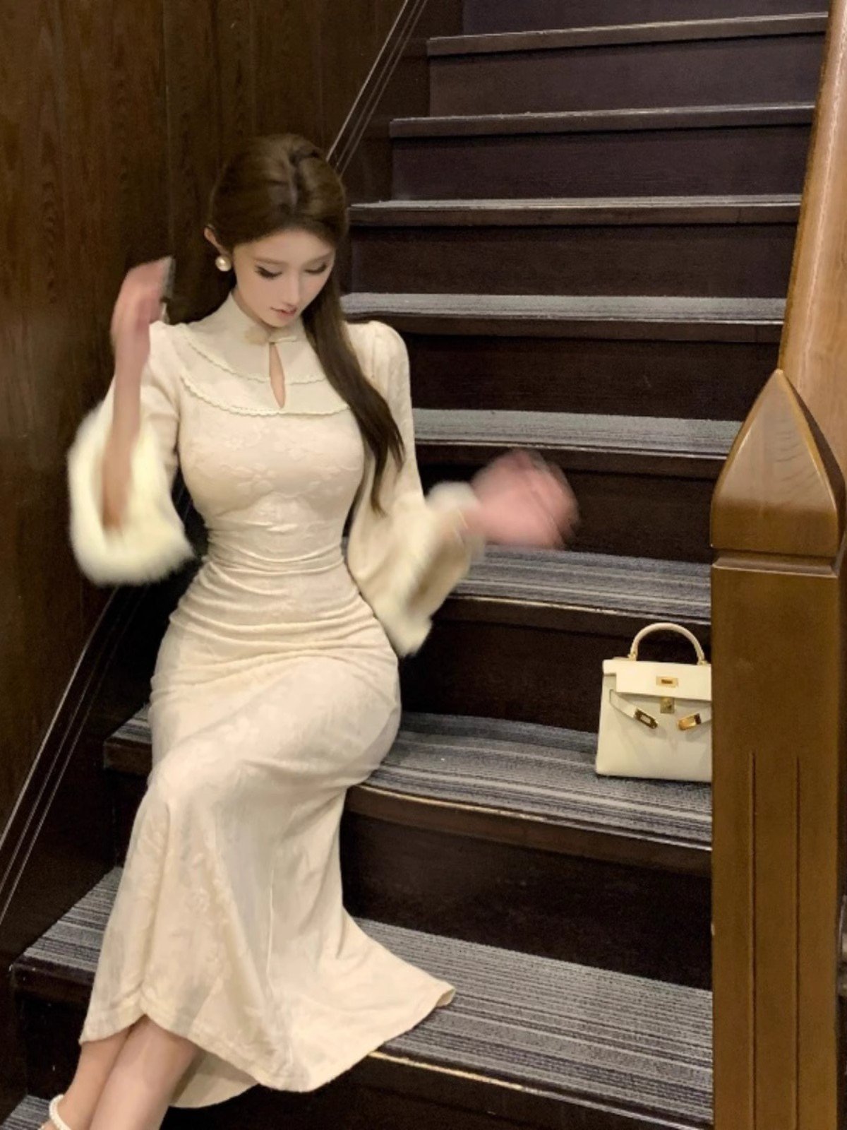 新中式改良旗袍连衣裙女秋冬年轻款少女日常
