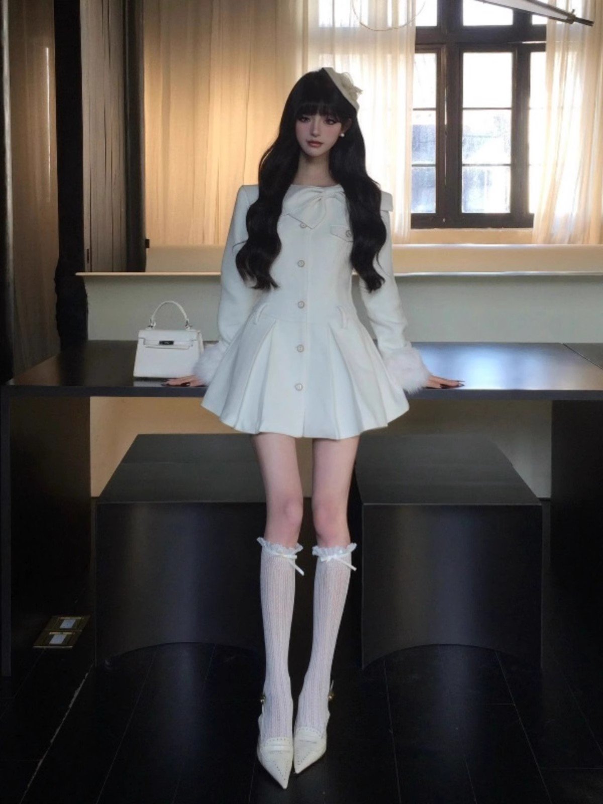 法式高级感蝴蝶结内搭连衣裙女冬季小个子