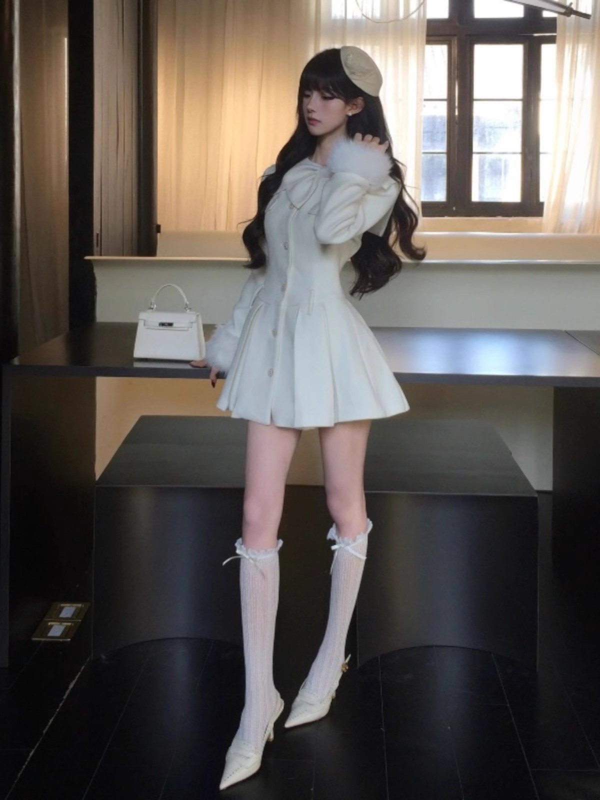性感白色镂空蕾丝内搭连衣裙女入冬小个子